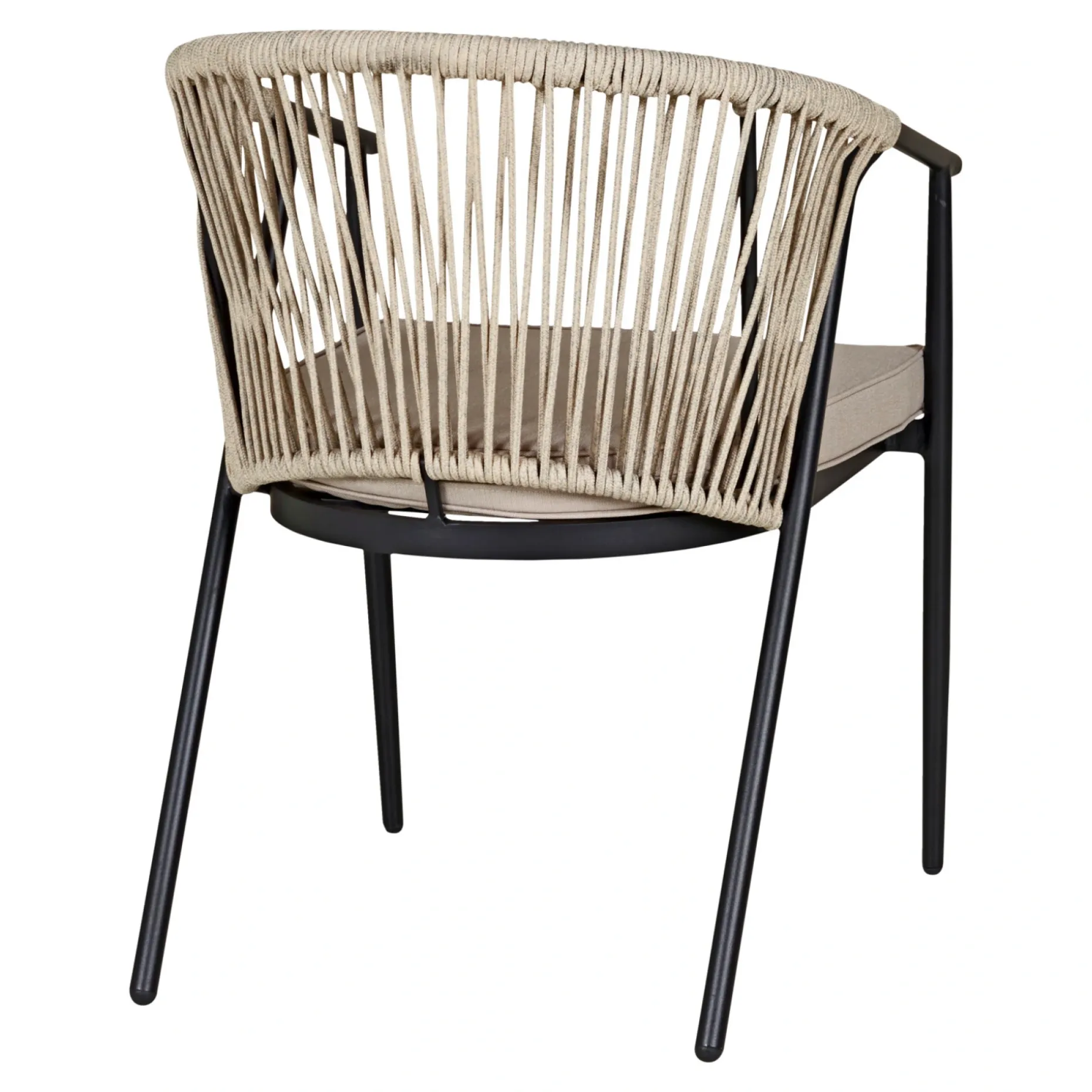Como stabelbar stol med lys sandfarvet rebflet og alustel.