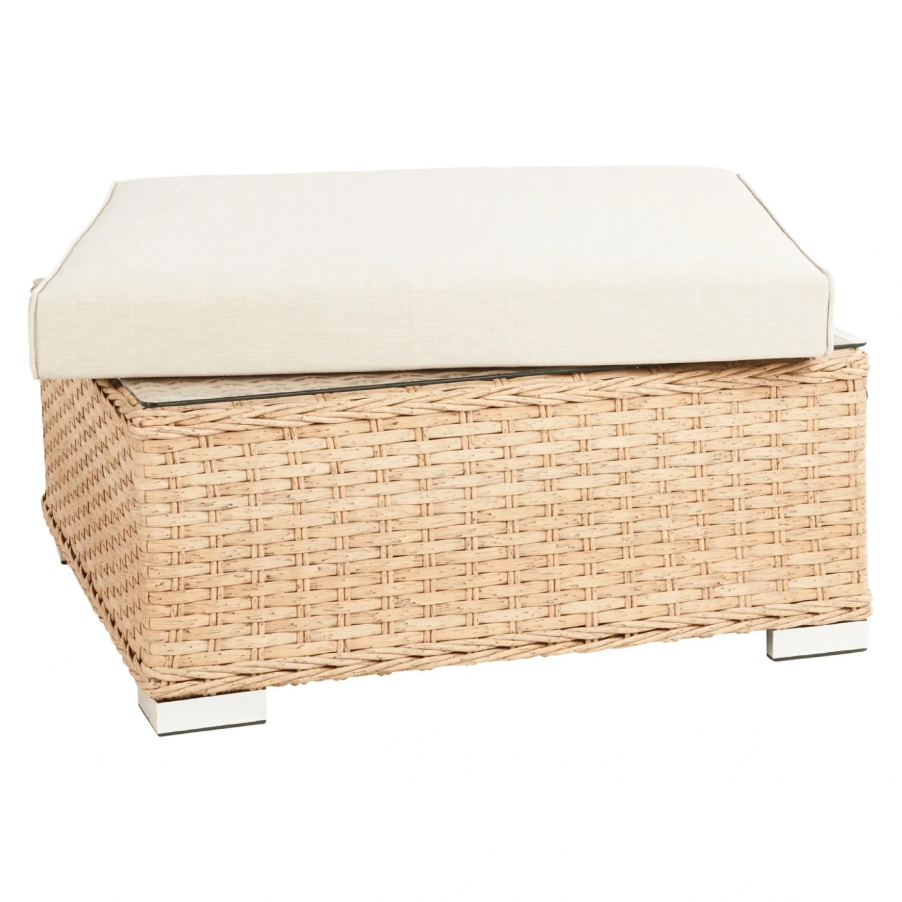 Cordoba puf/bord modul er fremstillet af PE-flet og alustel og fungerer som fleksibel puf eller sidebord i din udendørs lounge.