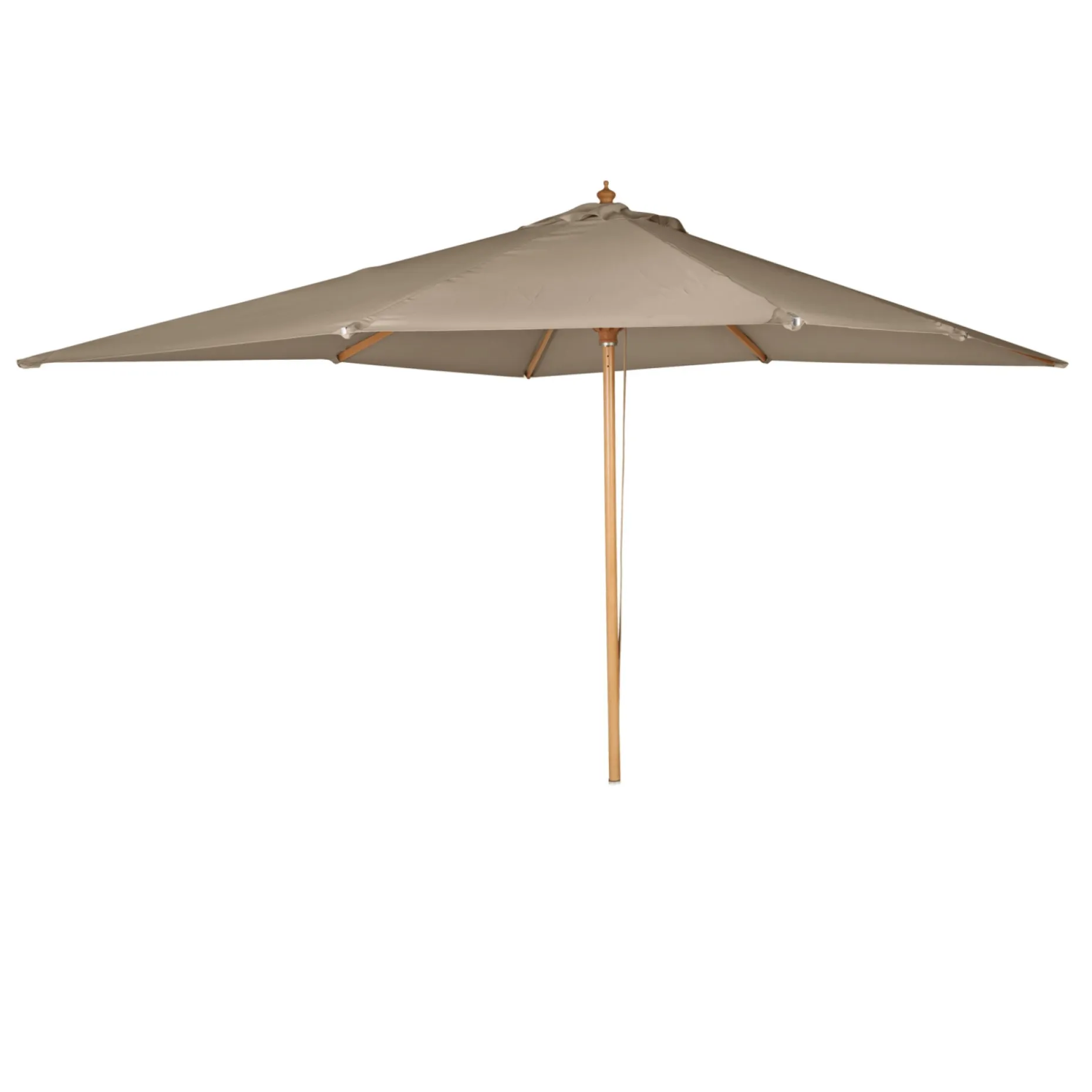Parasollen måler 3×3 meter, og har en kraftig polyesterdug 220 g/m2 med læderforstærkninger. Parasoldugen yder en UV beskyttelse på UV20.