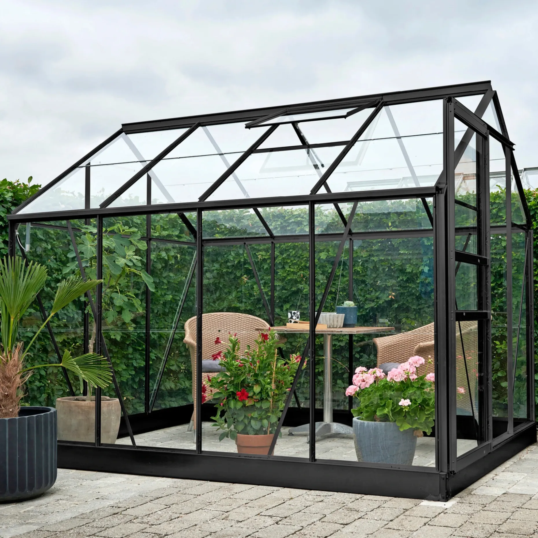Outrium 5,0m2 drivhus sort inkl. sokkel