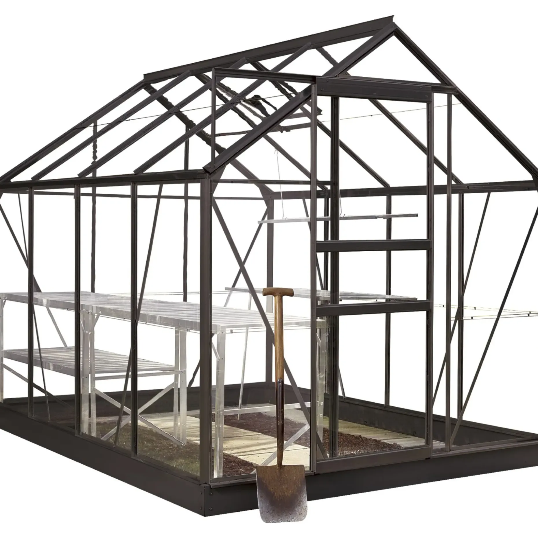 Når du køber dette drivhus, medfølger fundamentet, så du har alt, hvad du skal bruge for at få et solidt og vejrstabilt drivhus. Vi anbefaler, at du støber fundamentet i jorden, da det sikrer drivhuset bedst muligt mod storm.