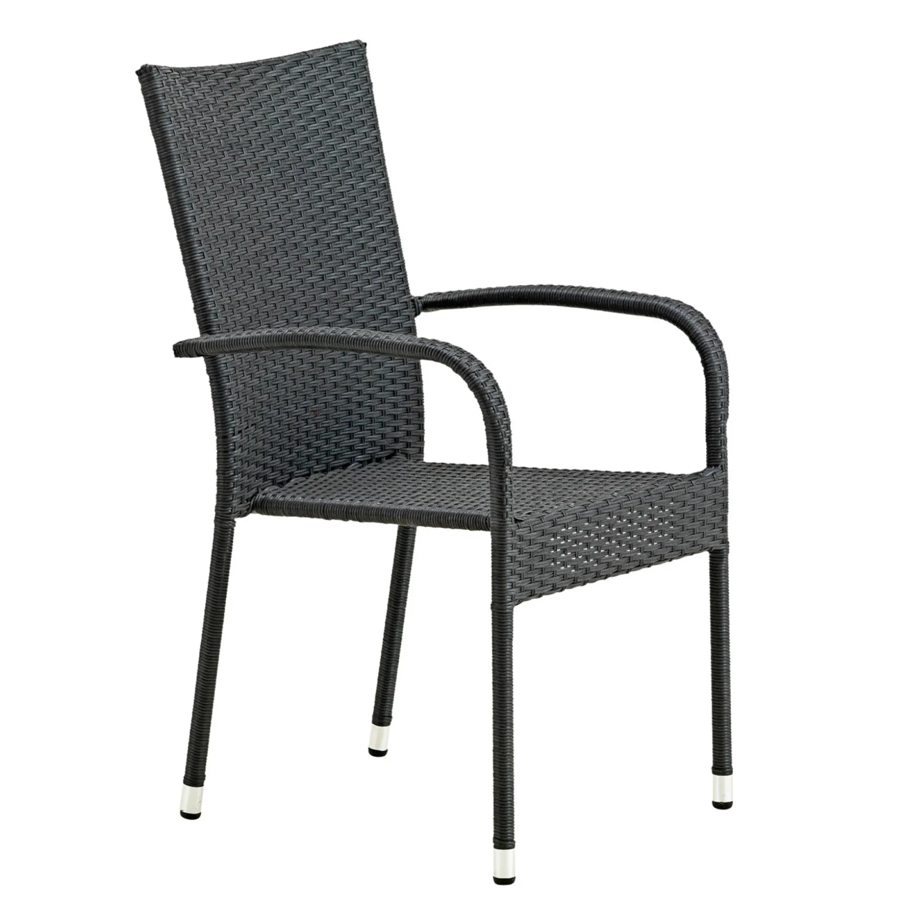 Denne havestol fra Outrium er en stabelbar stol i sort børstet PE-flet. Den er lavet i et tidsløs design, hvorved den passer til de fleste haveborde.