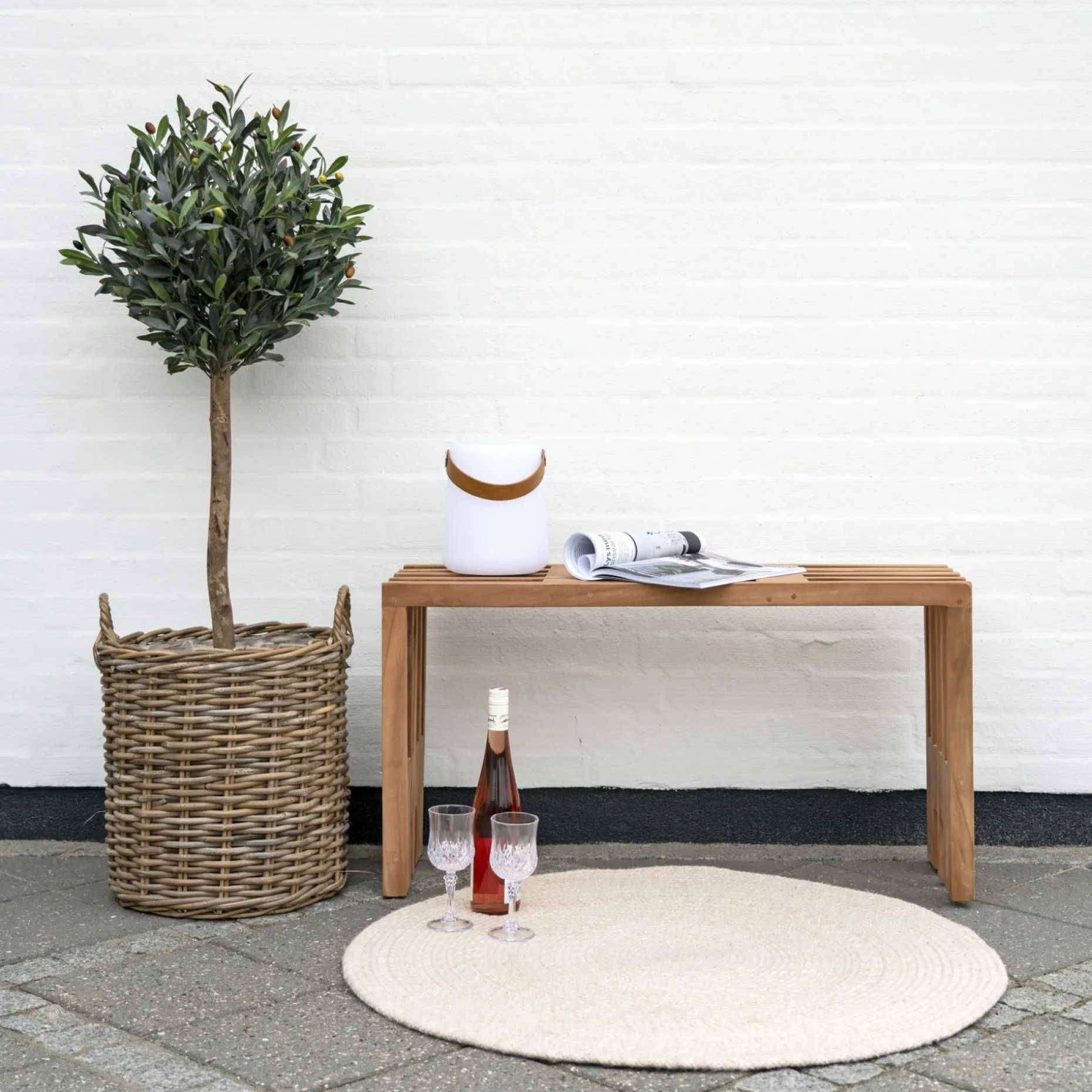 Håndvævet udendørstæppe i 100% genanvendt plast ( PET). Kan både anvendes ude og inde, men er særligt iddelt til at gøre spise- eller loungeområdet på terrassen lidt ekstra lækkert.