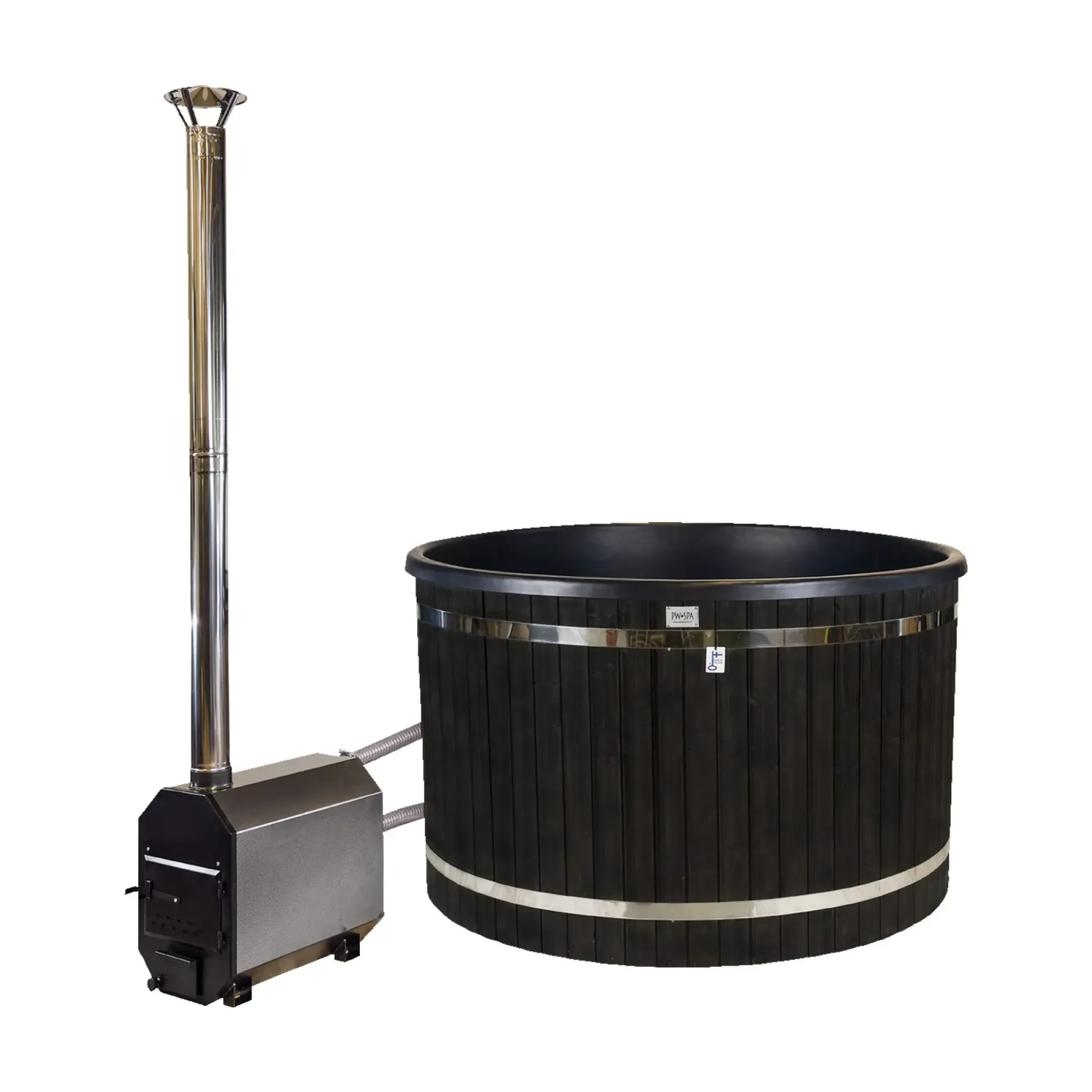 Plastweld Spa Classic vildmarksbad er udført i sortbejdset fyrretræ med indsats og slidstærkt låg i hygiejnisk PE-plast, som forbedrer opvarmning af badevandet. Plastweld spa vildmarksbad leveres med ekstern ovn på 25 kW i marine aluminium samt 2 meter høj skorsten.