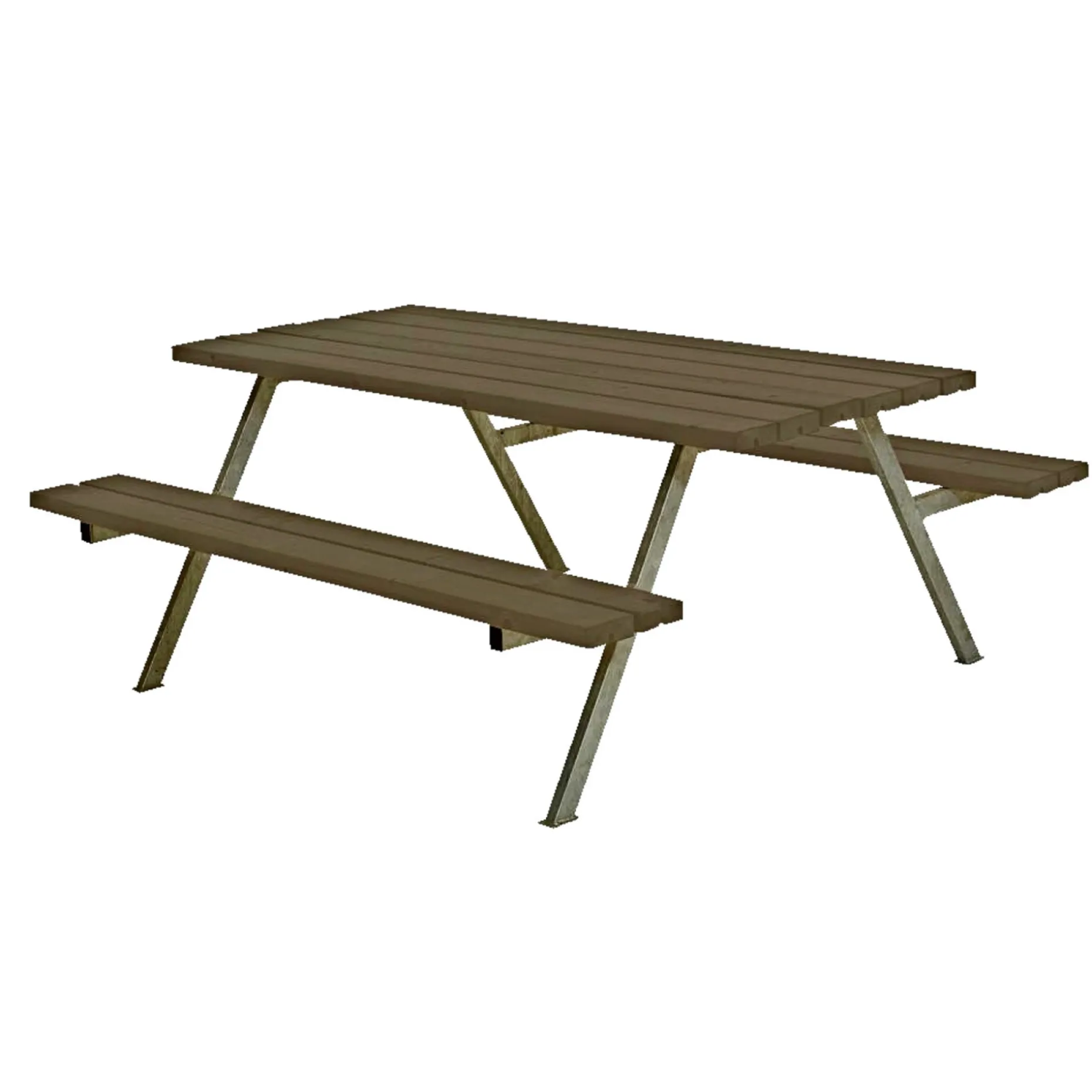 PLUS ALPHA BORDBÆNKESÆT GRÅBRUNAlpha Bord/Bænkesæt – 177 cm – GråbrunPlanker:42×116 mm nåletræ.Trykimprægneret og grundmalet gråbrun.Nærmeste RAL 7023 – vandbaseret. Varenr. 19816-18.Bordplade:Længde 177 cm – bredde 76 cm – højde 73 cm.Bænk:Længde 177 cm – bredde 24,5 cm – højde 45 cm.Siddepladser: 6 (3 pr. bænk).Stel/ben:30×50 mm varmgalvaniseret stål.Leveres som “Saml selv”. Trykimprægneret og grundmalet