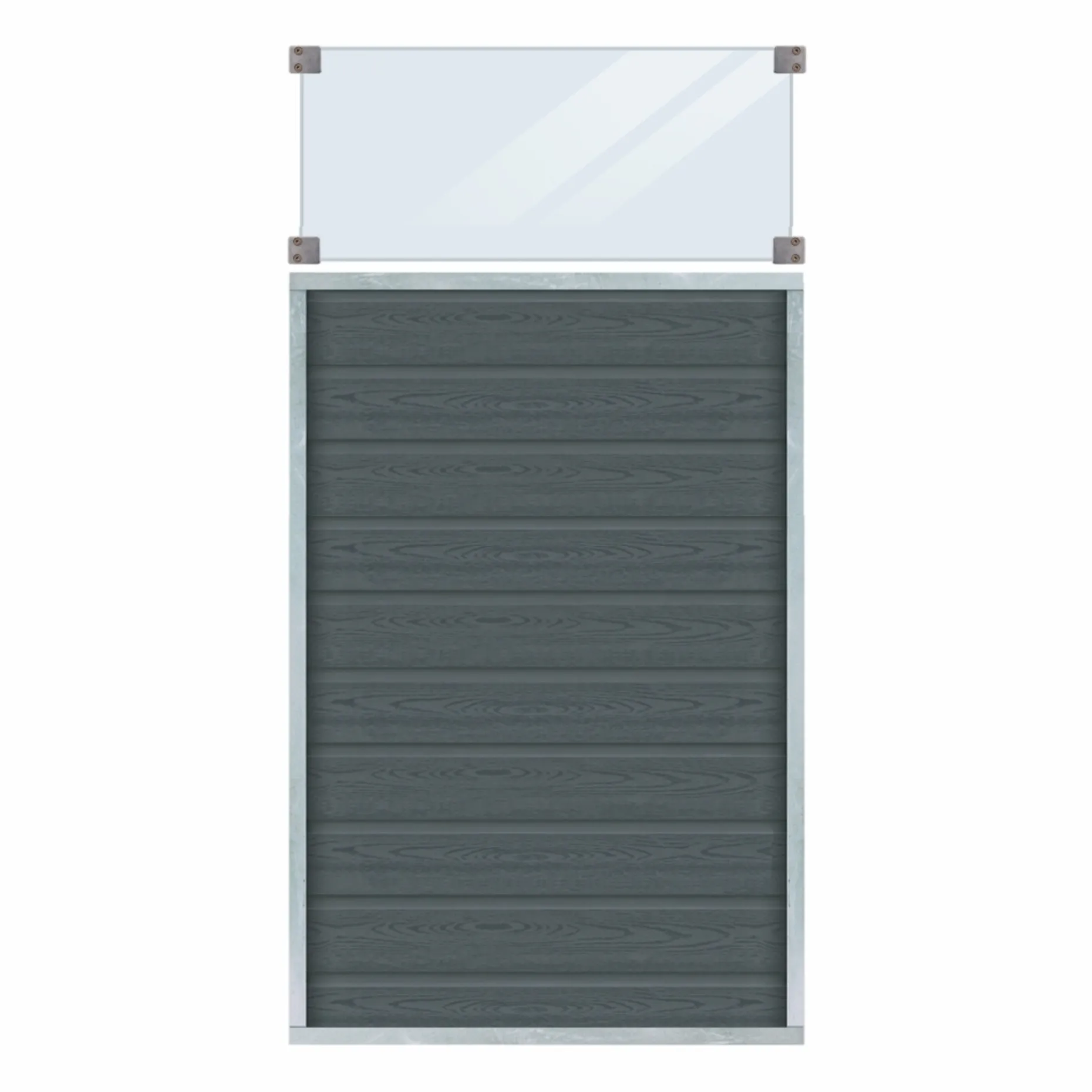 Artura komposithegn med klart glas er et holdbart hegn til opdeling og afskærmning. Materialet giver en ensartet og vedligeholdelsesvenlig løsning med et moderne udtryk.