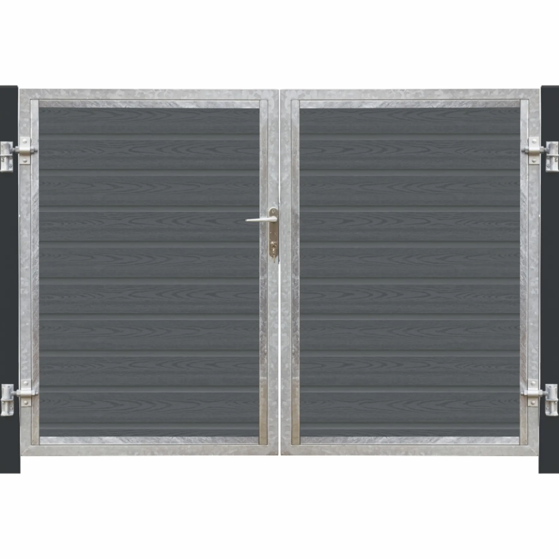PLUS Artura komposit dobbeltlåge i mål 213×135 cm leveres med gråsorte stolper til nedstøbning.