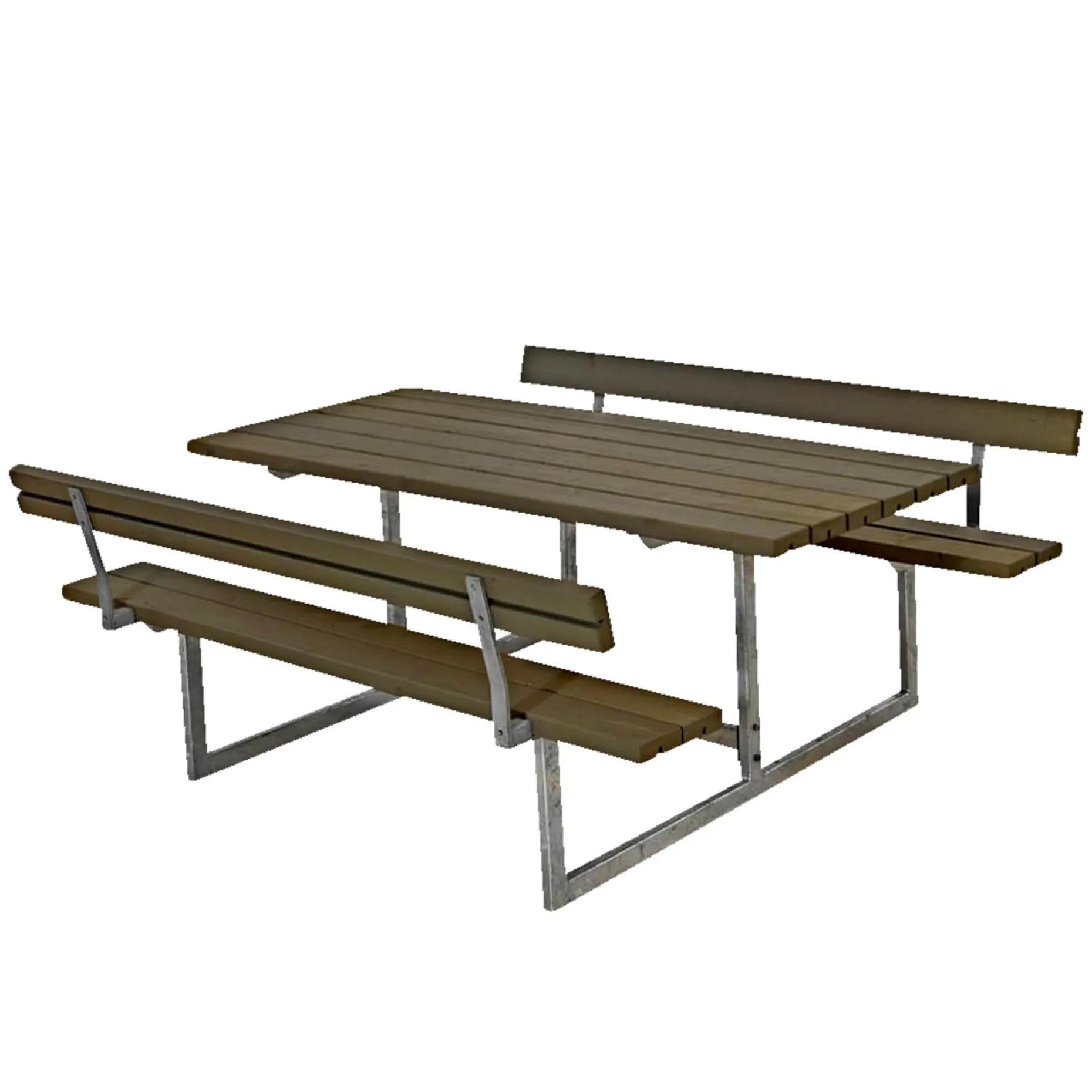 PLUS BASIC BORDBÆNKESÆT GRÅBRUNBasic Bord/Bænkesæt m/2 ryglæn – 177 cm – GråbrunVarenr. består af:1 stk. bord/bænksæt og 2 stk. ryglæn inkl. beslag.Planker:42×116 mm nåletræ.Trykimprægneret og grundmalet gråbrun.Nærmeste RAL 7023 – vandbaseret. Varenr. 19816-18.Bordplade:Længde 177 cm – bredde 78 cm – højde 73 cm.Bænke:Længede 177 cm – bredde 25 cm – højde 45 cm.Ryghøjde 75 cm.Siddepladser: 6 (3 pr. bænk).Stel/ben:30×50 mm varmgalvaniseret stål.Leveres som “Saml selv”.Trykimprægneret og grundmalet