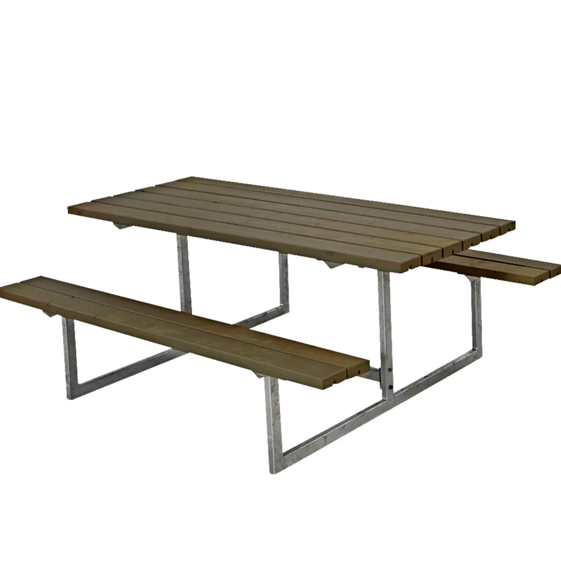 PLUS BASIC BORDBÆNKESÆT GRÅBRUNBasic Bord/Bænkesæt – 177 cm – GråbrunPlanker:42×116 mm nåletræ.Trykimprægneret og grundmalet gråbrun.Nærmeste RAL 7023 – vandbaseret. Varenr. 19816-18.Bordplade:Længde 177 cm – bredde 78 cm – højde 73 cm.Bænke:Længde 177 cm – bredde 25 cm – højde 45 cm.Siddepladser: 6 (3 pr. bænk).Stel/ben:30×50 mm varmgalvaniseret stål. Leveres som “Saml selv”.Trykimprægneret og grundmalet