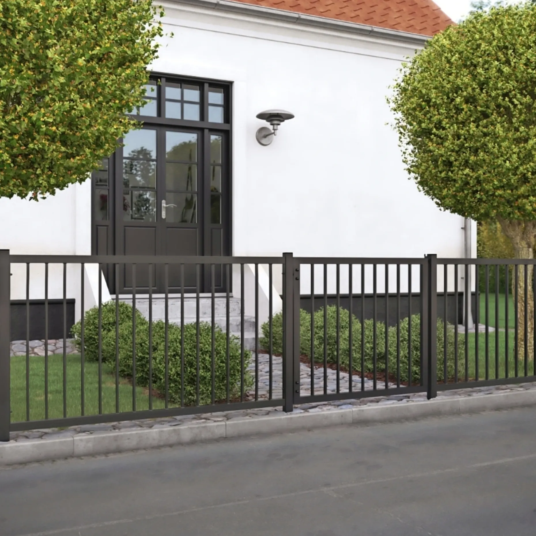 Rammerne og de lodrette stave er dimensioneret for stabilitet og et stramt, ensartet udseende.