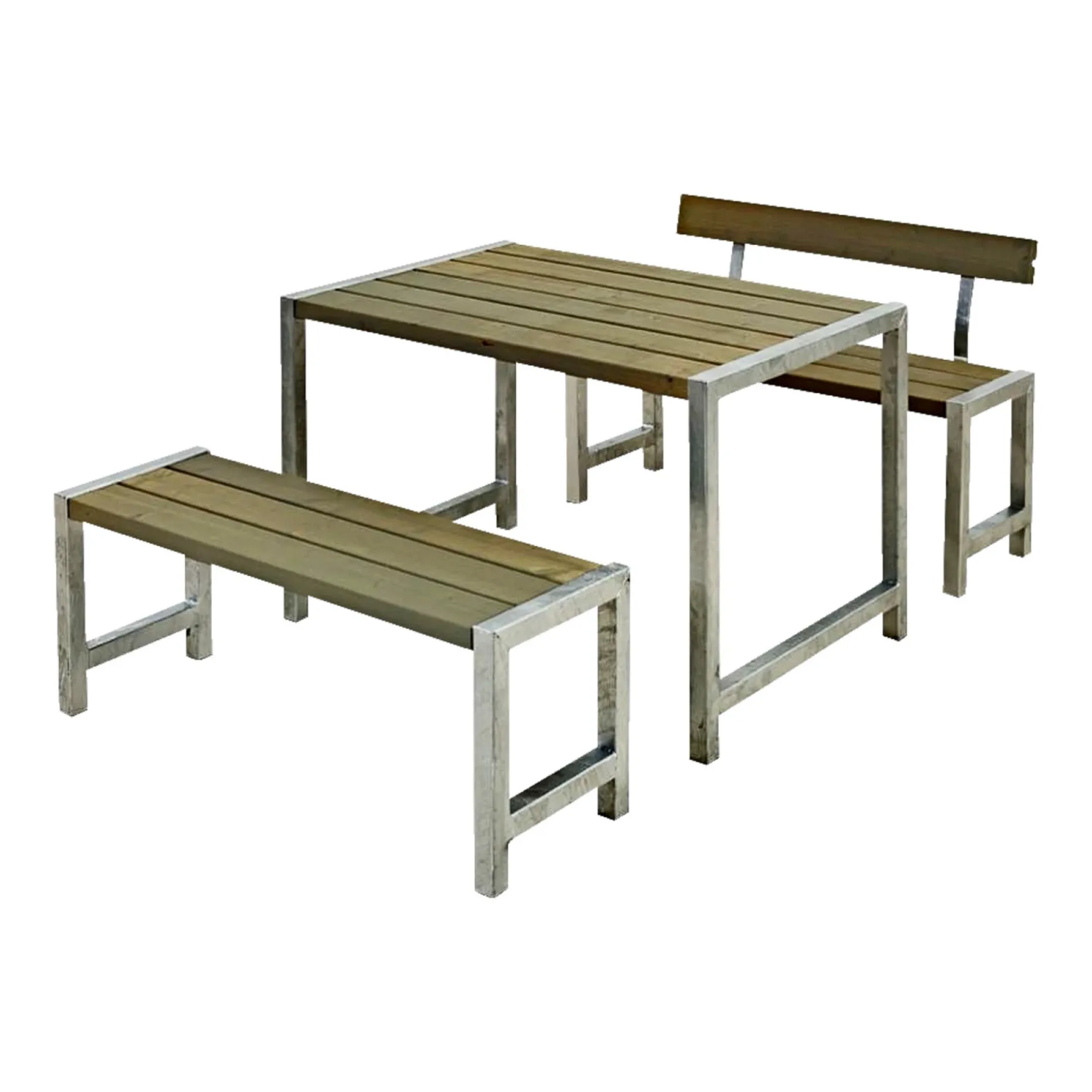 PLUS CAFE´SÆT CAFE PLANKESÆT GRÅBRUNCafé Plankesæt m/1 ryglæn – 127 cm – GråbrunVarenr. består af: 1 stk. bord og 2 stk. bænke samt 1 stk. ryglæn.Inkl. justérbare stillesko.Planker:42×116 mm nåletræ.Trykimprægneret og grundmalet gråbrun.Nærmeste RAL 7023 / vandbaseret. Varenr. 19816-18.Bord:Længde 127 cm – bredde 77 cm – højde 73 cm.Bænke:Længde 127 cm – bredde 38 cm – højde 45 cm.Ryghøjde 75 cm.Siddepladser: 4 (2 pr. bænk).Stel/ben: 45×45 mm varmgalvaniseret stål.Justérbare stillesko (0-15 mm).Leveres som “Saml selv”. Trykimprægneret og grundmalet