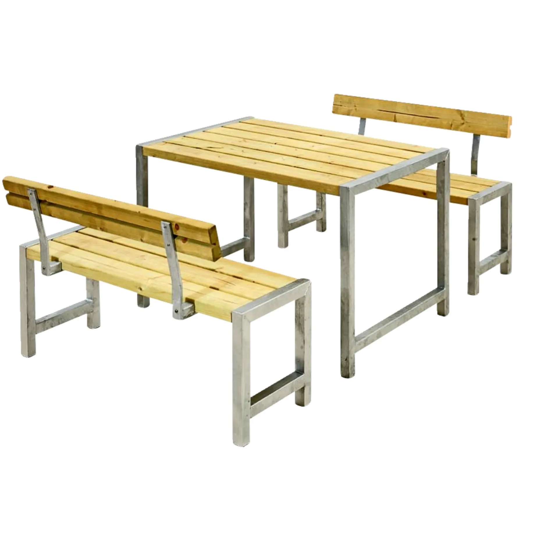 PLUS CAFE PLANKESÆT NATURCafé Plankesæt m/2 ryglæn – 127 cm – TrykimprægneretVarenr. består af: 1 stk. bord og 2 stk. bænke samt 2 stk. ryglæn.Inkl. justérbare stillesko.Planker:42×116 mm trykimprægneret nåletræ.Bord:Længde 127 cm – bredde 77 cm – højde 73 cm.Bænke:Længde 127 cm – bredde 38 cm – højde 45 cm.Ryghøjde 75 cm.Siddepladser: 4 (2 pr. bænk).Stel/ben: 45×45 mm varmgalvaniseret stål.Justérbare stillesko (0-15 mm).Leveres som “Saml selv”. Trykimprægneret klasse A/B