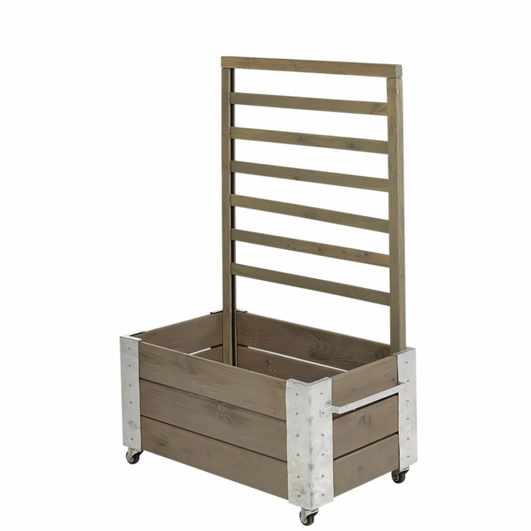 Den trykimprægnerede og grundmalede overflade giver et ensartet gråbrunt udseende og øget træbeskyttelse, så kassen holder længere med begrænset vedligeholdelse.