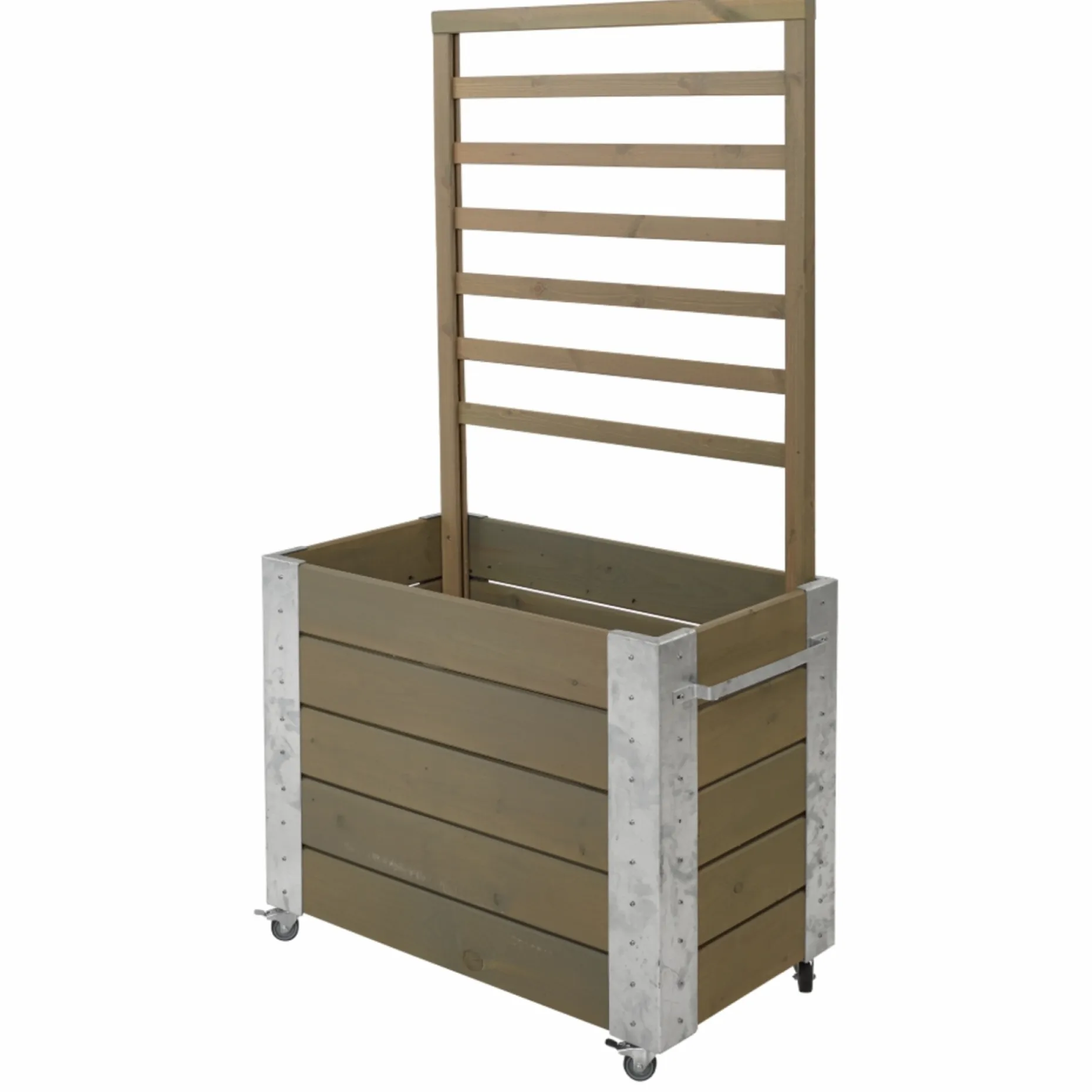 Den leveres med indbygget espalier og hjul, så du kan placere og flytte plantekassen efter behov. Plankerne er 20×120 mm, hvilket giver en solid konstruktion og et naturligt udseende.