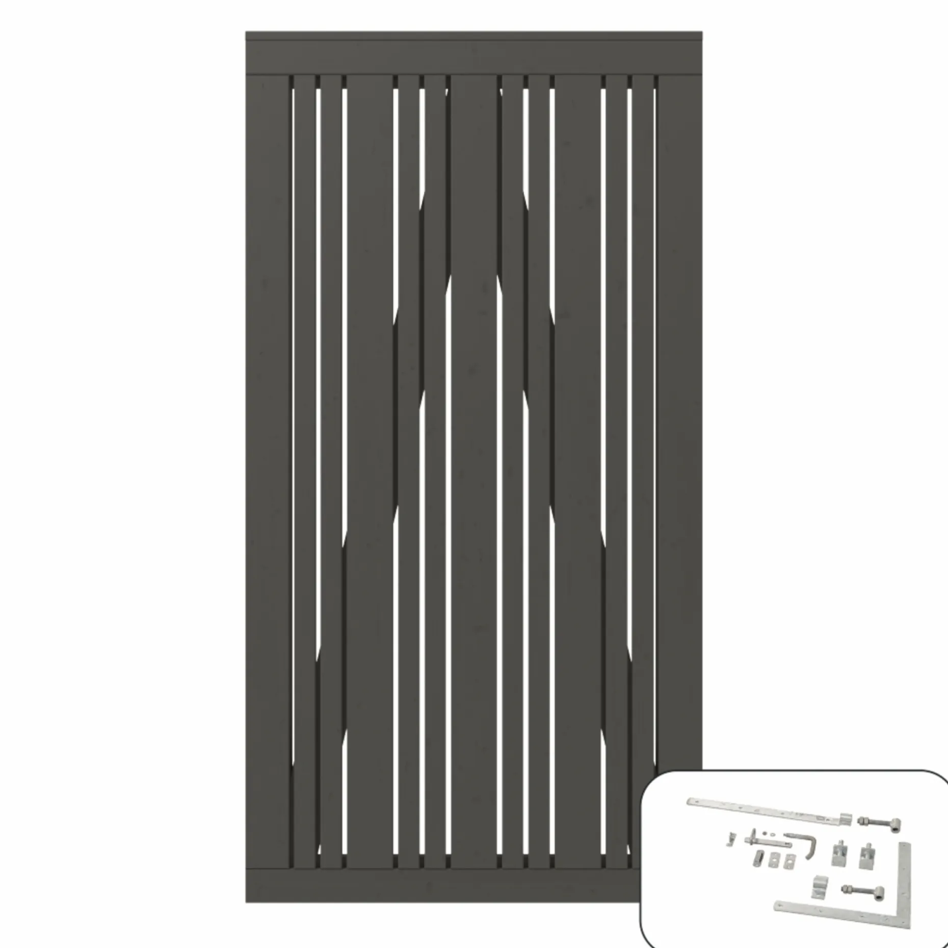Lågen fungerer som indgang til haven og som diskret afskærmning ved terrasse eller sti, hvor den både skaber privatliv og et ensartet visuelt forløb sammen med de øvrige elementer. Medfølger beslag til montering.