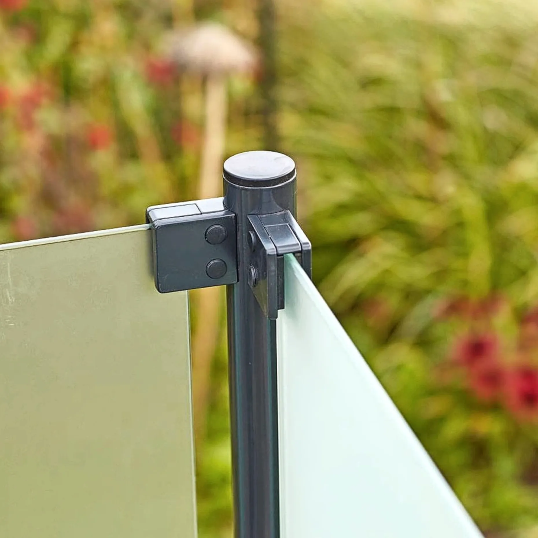 Glashegnet leveres inkl. runde beslag, hvilket giver en stabil og visuelt diskret fastgørelse. Denne model fås i dimensionen 90×91 cm og er en bestillingsvare. Hegnet findes desuden i fire forskellige størrelser, så du kan vælge den rette løsning til dit projekt. Stolper medfølger ikke.