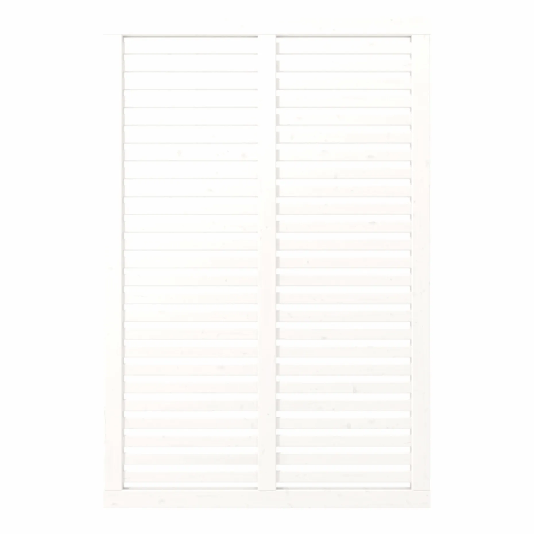 Designet med smalle lister skaber både privathed og en åben fornemmelse, så området ikke lukkes helt af. Persienneeffekten giver et grafisk spil af linjer og skaber et roligt fokus i haven, terrasseområdet eller som rumdeler i større uderum. Den ensartede behandling og hvide farve gør hegnet nemt at kombinere med planter og havemøbler. Hegnet fungerer både som dekorativ afgrænsning og som privathedsløsning uden at dominere omgivelserne.
