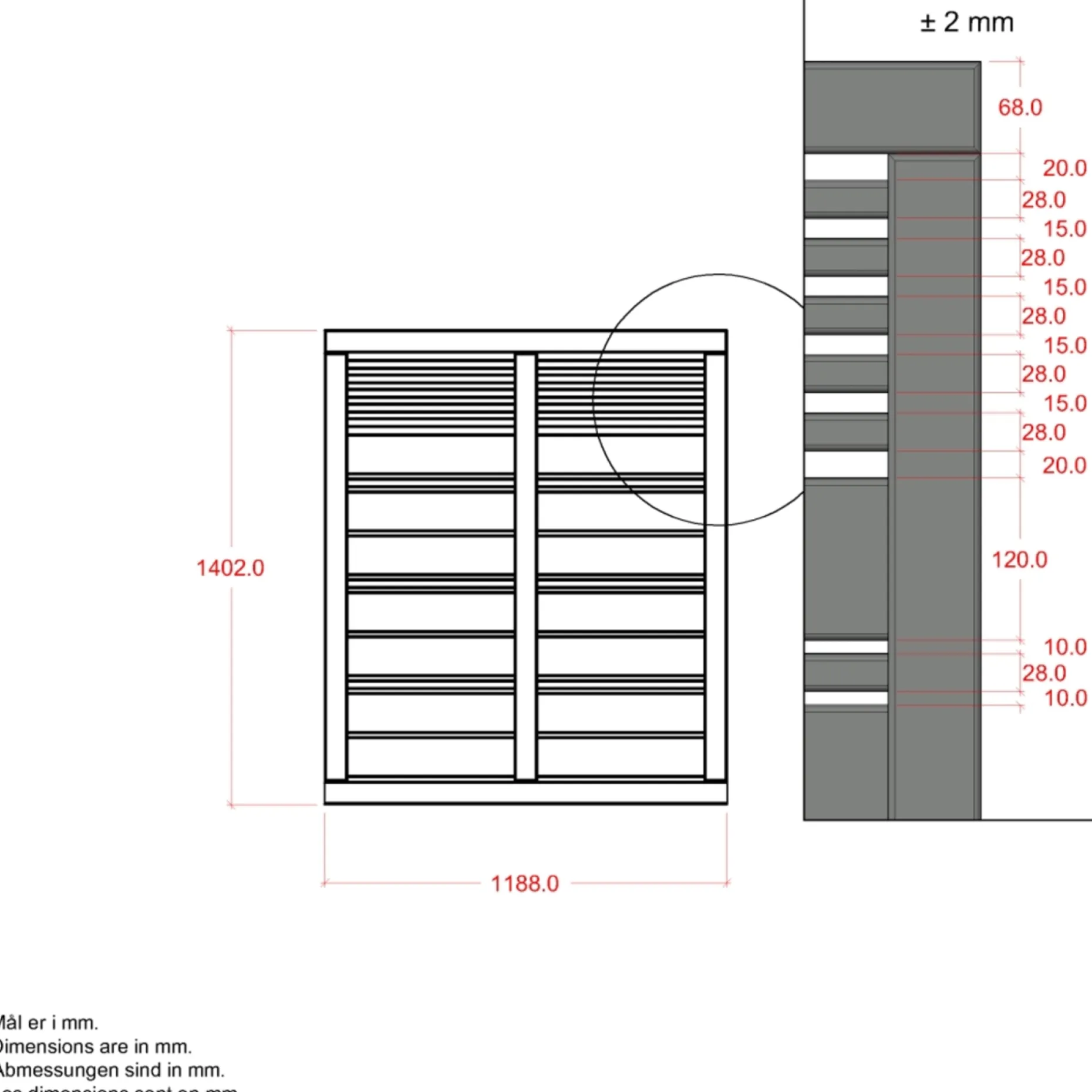 Hegnet måler 120 x 140 cm og fås i det angivne format 3,4x120x140CM. Det enkle, grafiske udtryk tilfører visuel rytme og struktur i haven.