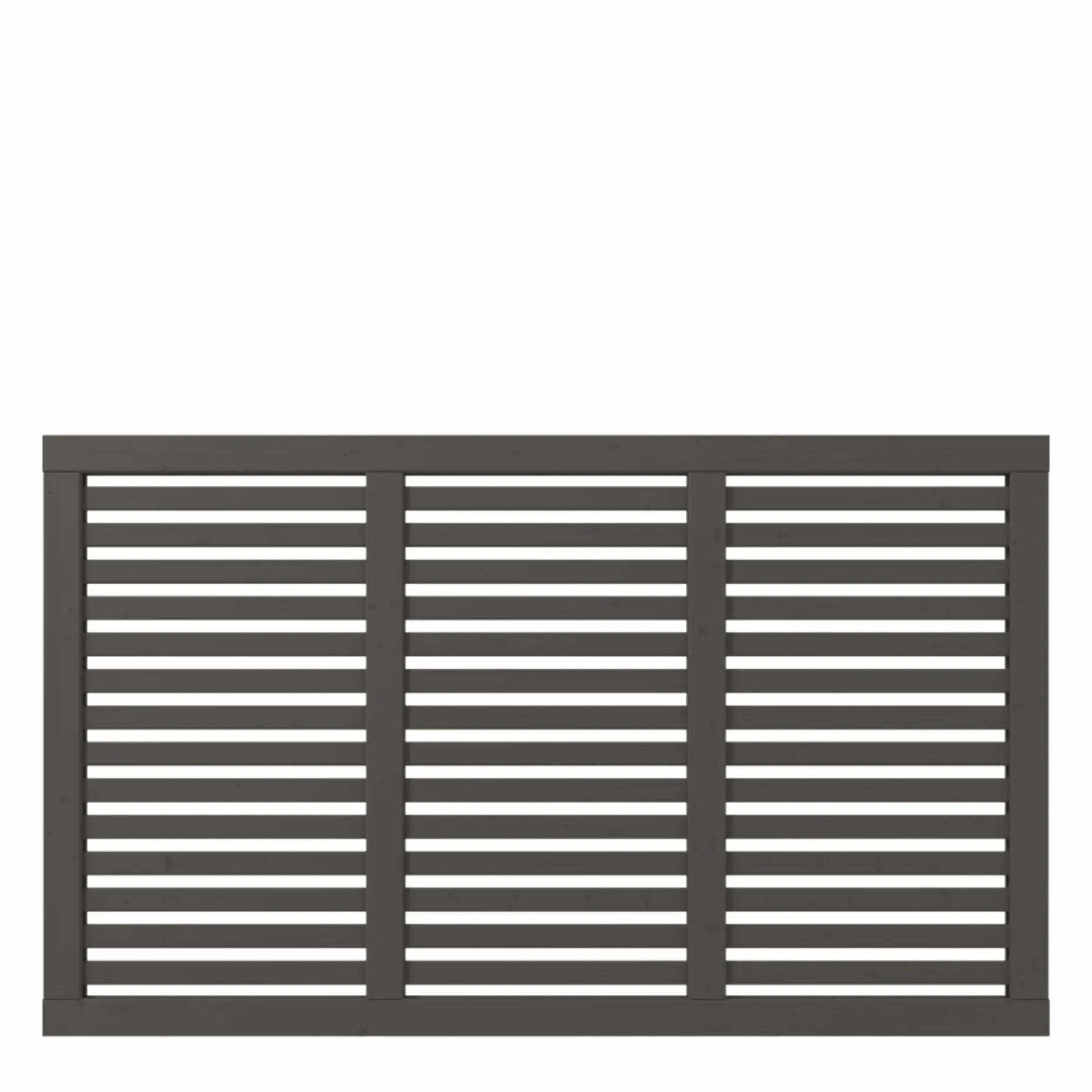 Harmoni Hegn er et smalt listehegn i træ i målene 180×107 cm. Hegnet er fungicidbehandlet og grundmalet i umbragrå (RAL7022), hvilket giver en afdæmpet, tidløs overflade.
