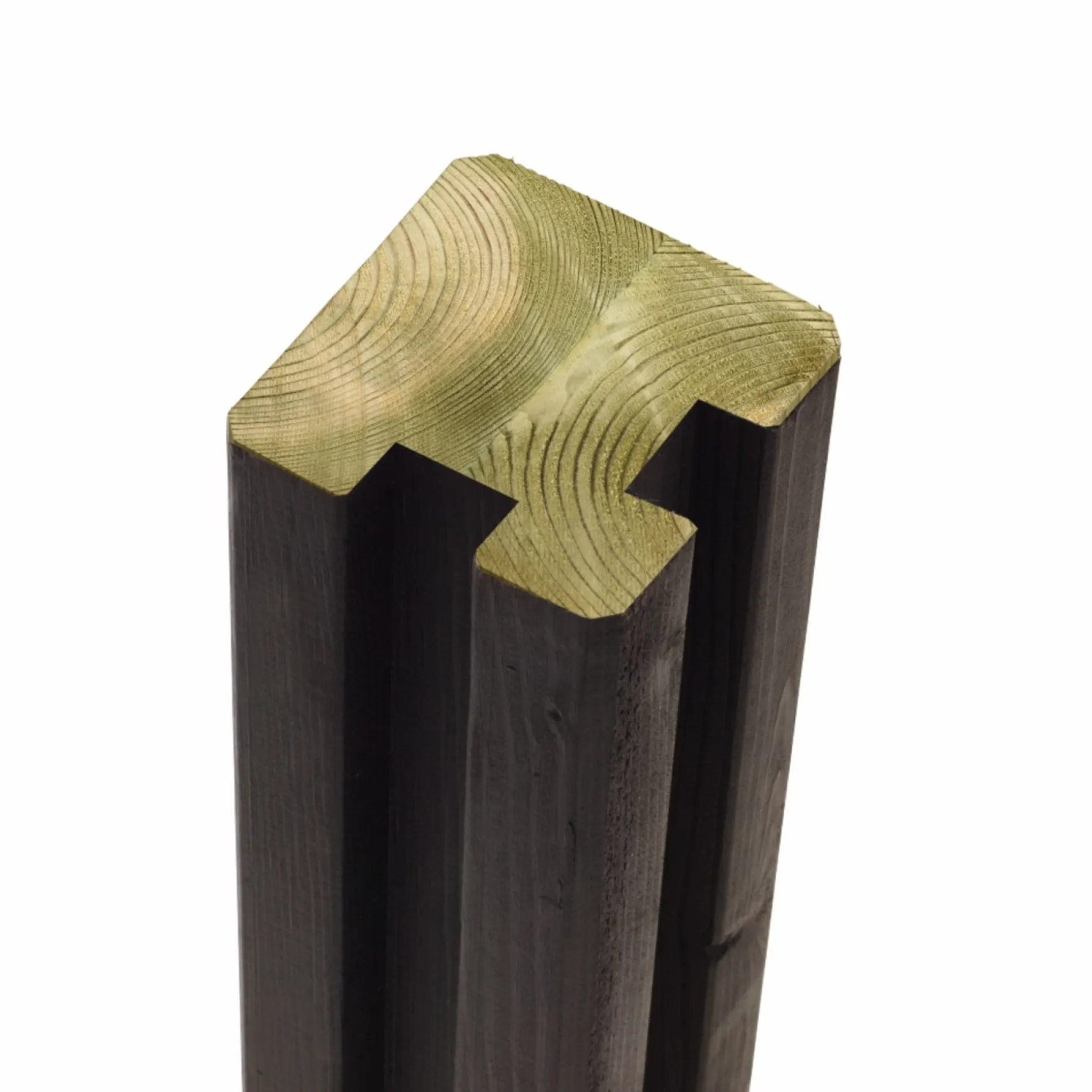 Stolpen er produceret af nordisk fyrretræ og er trykimprægneret NTR mærket klasse A, hvilket giver effektiv beskyttelse mod råd og gør den egnet til nedgravning. Grundmalingen beskytter og giver en ensartet sort overflade, der giver et færdigt, vedligeholdelsesvenligt udtryk.