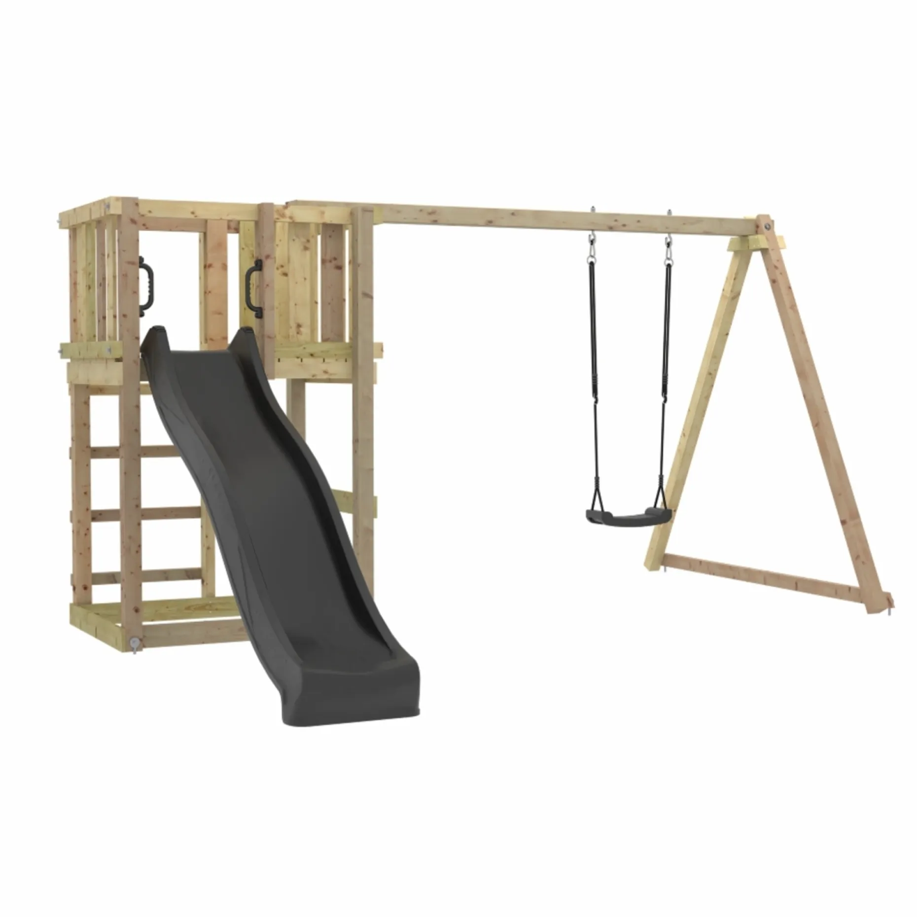 - Inkluderer gyngestativ, gråsort rutsjebane og gynge