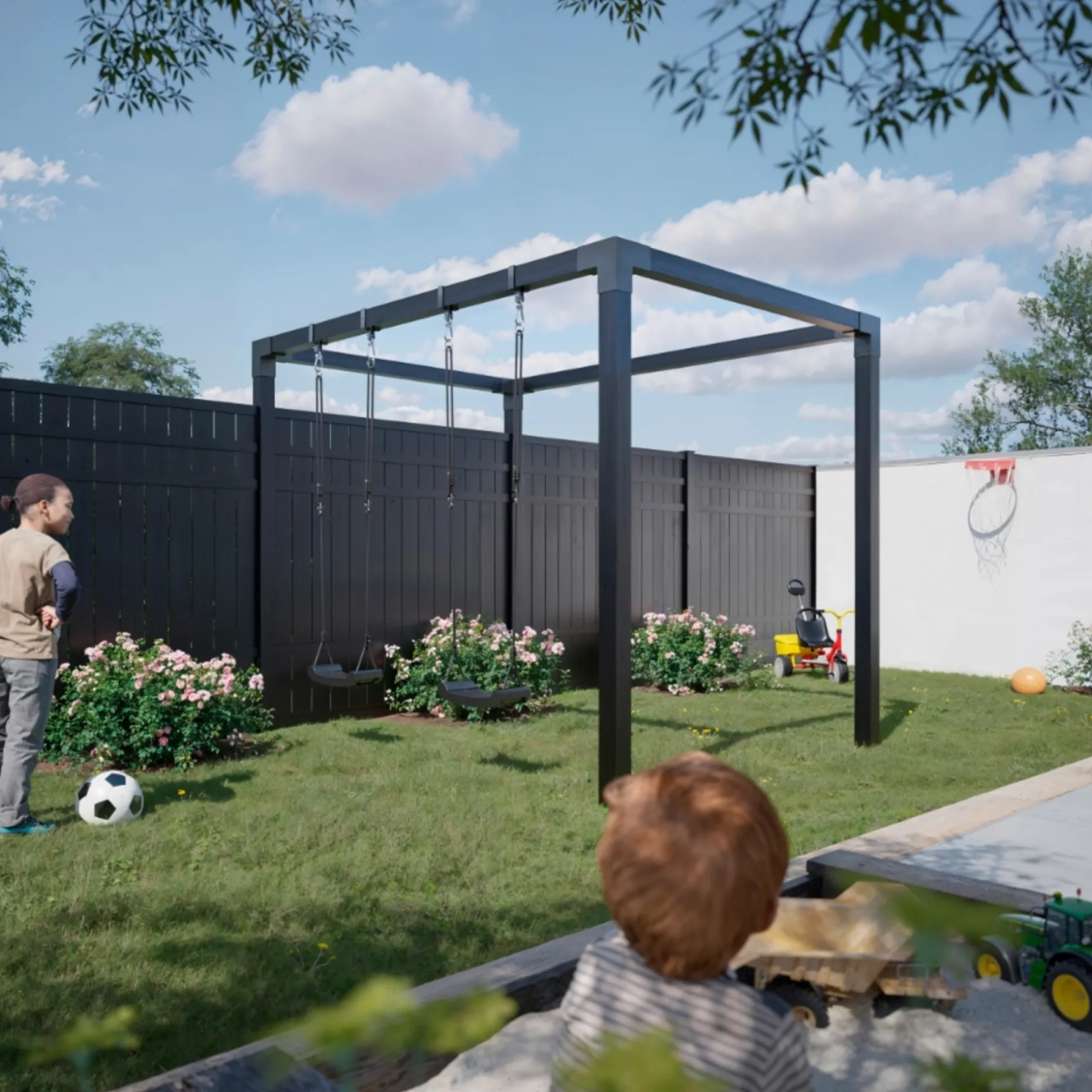 Daylife-serien er designet som en hyldest til dagligdagen og livet med alt, hvad det indebærer. Med dette gyngestativ kan du skabe et indbydende uderum, der kan bruges til hverdagens mange gøremål og tilpasses i takt med familiens behov.