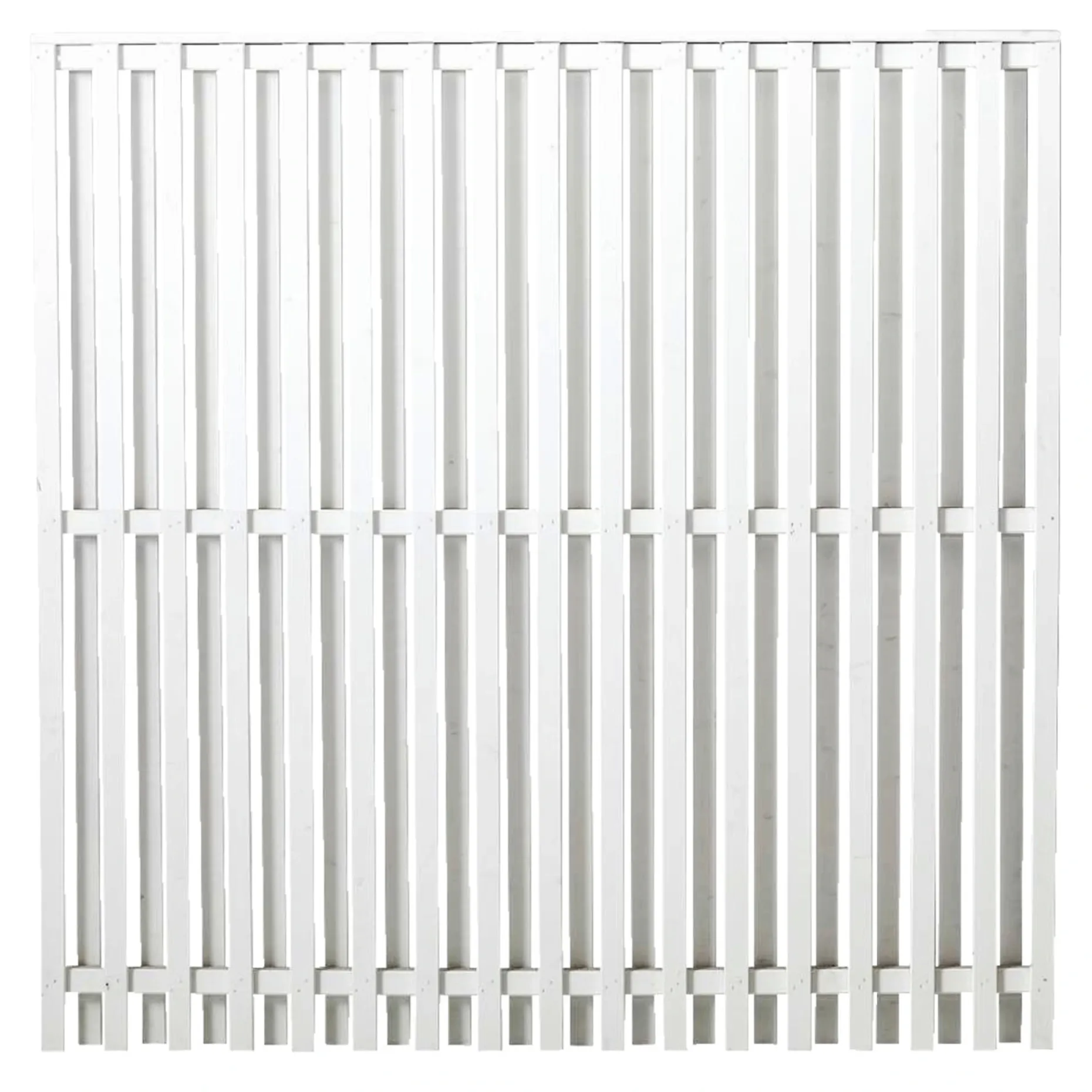 Det hvide grundlag skaber et lyst og indbydende udtryk i uderummet. To lag grundmaling giver en ensartet overflade, der gør efterbehandling nemmere. Fungicidbehandlingen tilfører overfladen ekstra modstand mod svampeangreb i fugtige omgivelser. Hegnet fungerer godt som rumdeler uden at skabe fuldstændig visuel lukning. Standarddimensionen 180 x 180 cm gør det nemt at matche andre elementer i haven. Installér flere sektioner for større afskærmning, eller brug enkeltvis som dekorativ afgrænsning.