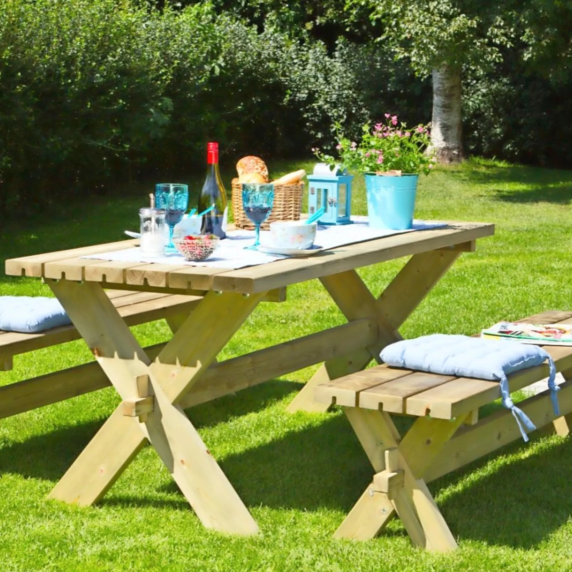 PLUS NOSTALGI BORDBÆNKESÆT NATURNostalgi Plankesæt – 177 cm – Bord og 2 Bænke – TrykimprægneretVarenr. består af:1 stk. bord og 2 stk. bænke.Planker:42×116 mm trykimprægneret nåletræ.Bord:Længde 177 cm – bredde 76 cm – højde 72 cm.Bænke:Længde 177 cm – bredde 38 cm – højde 44 cm.Antal siddepladser: 6 (3 pr. bænk).Stel/ben: 42×116 / 42×90 mm.Leveres som “Saml selv”. Trykimprægneret klasse A/B