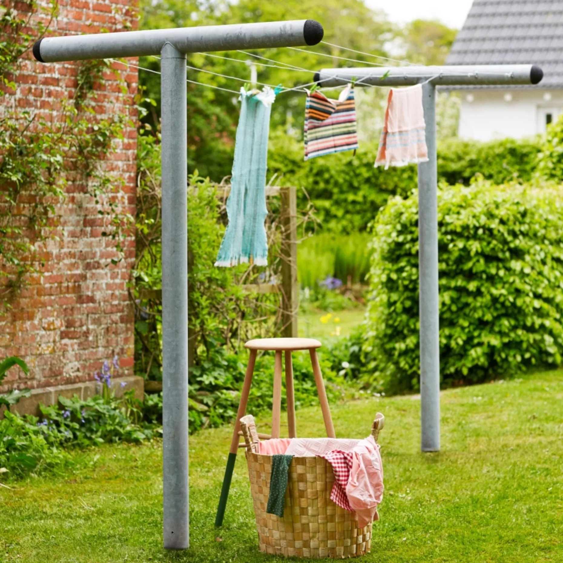 Wireen sikrer stabilitet og korrekt spænding af tørresnoren, så tøj hænger jævnt og luftes effektivt. Konstruktionen egner sig til både små og større haver og kan rumme større mængder vasketøj ved familievask. Den varmegalvaniserede overflade mindsker behovet for hyppig vedligeholdelse og bevarer det rå udtryk over tid.