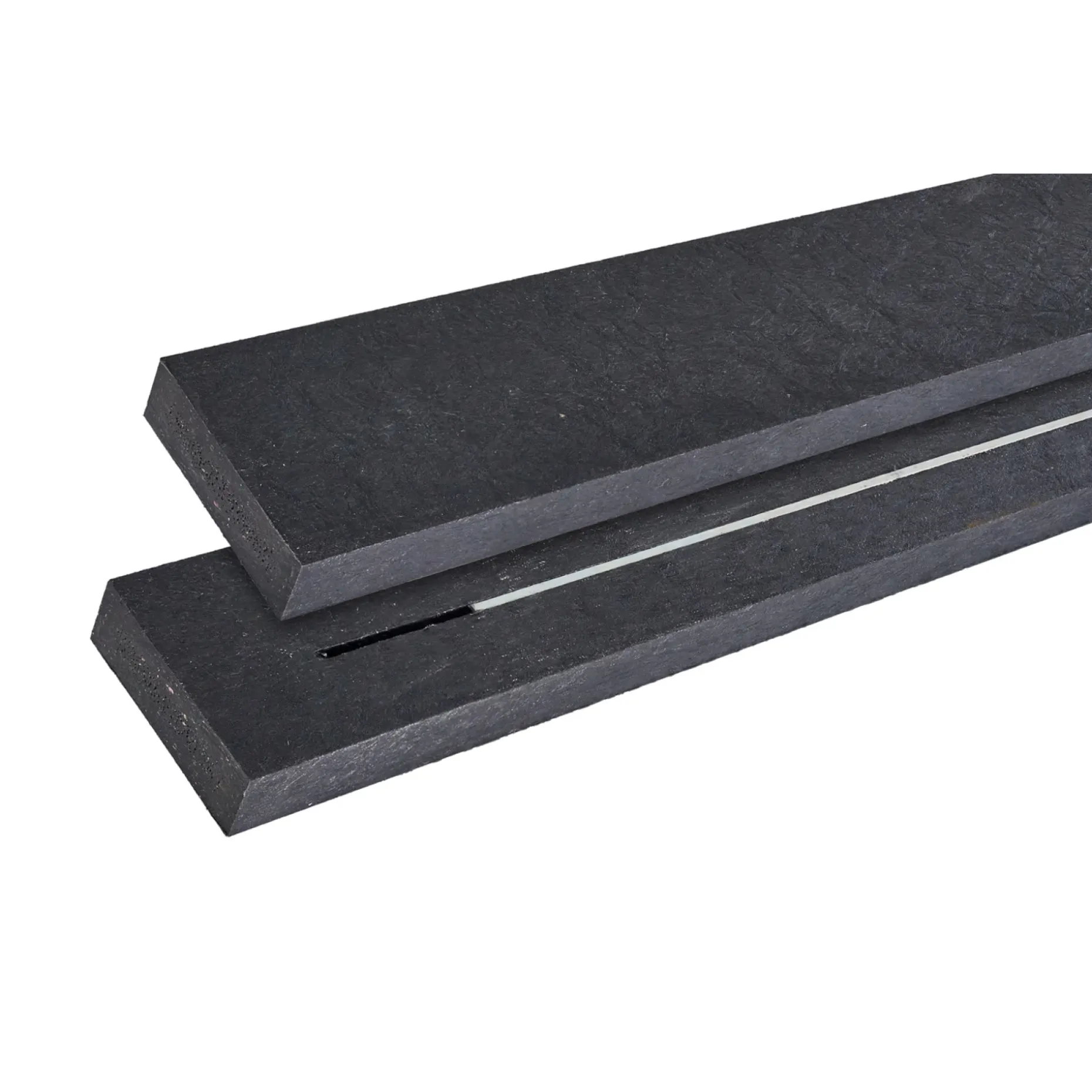 Ensartet overflade og struktur. Skarpkantede massive planker forstærket med stålprofil. Vedligeholdelsesfri, gennemfarvet og UV-stabiliseret. Plankerne er splintfrie, og der vil ikke forekomme sprækker og revner – og de skal ikke efterbehandles eller vedligeholdes med maling. Kræver kun rengøring med børste og vand.