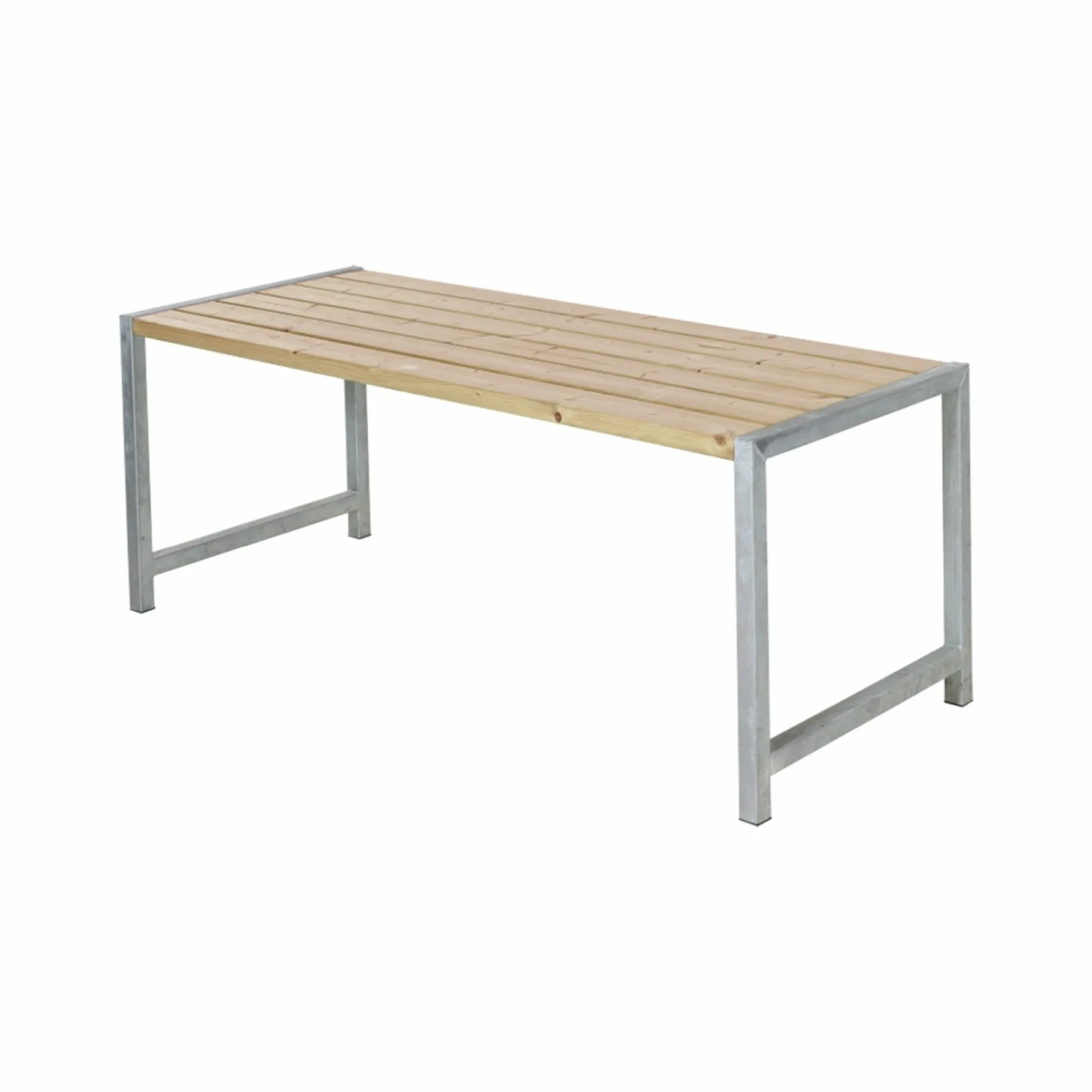 Vores designere ønskede at tilføre et moderne udtryk til det klassiske plankesæt – derfor har møblerne i plankeserien fået det kantede og kraftige stel af varmgalvaniseret stål.