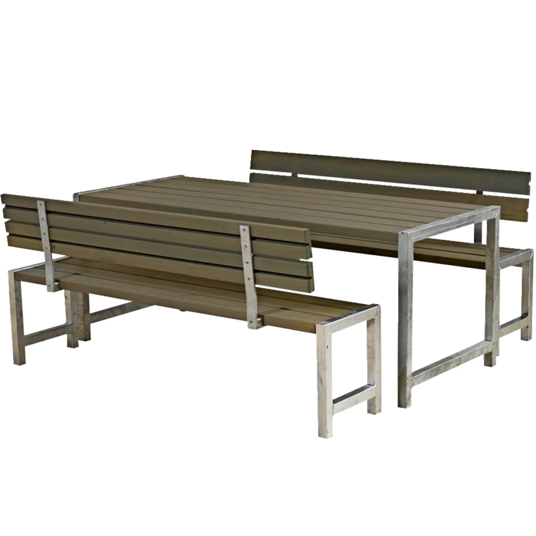 1 stk. bord og 2 stk. bænke samt 2 stk. ryglæn.