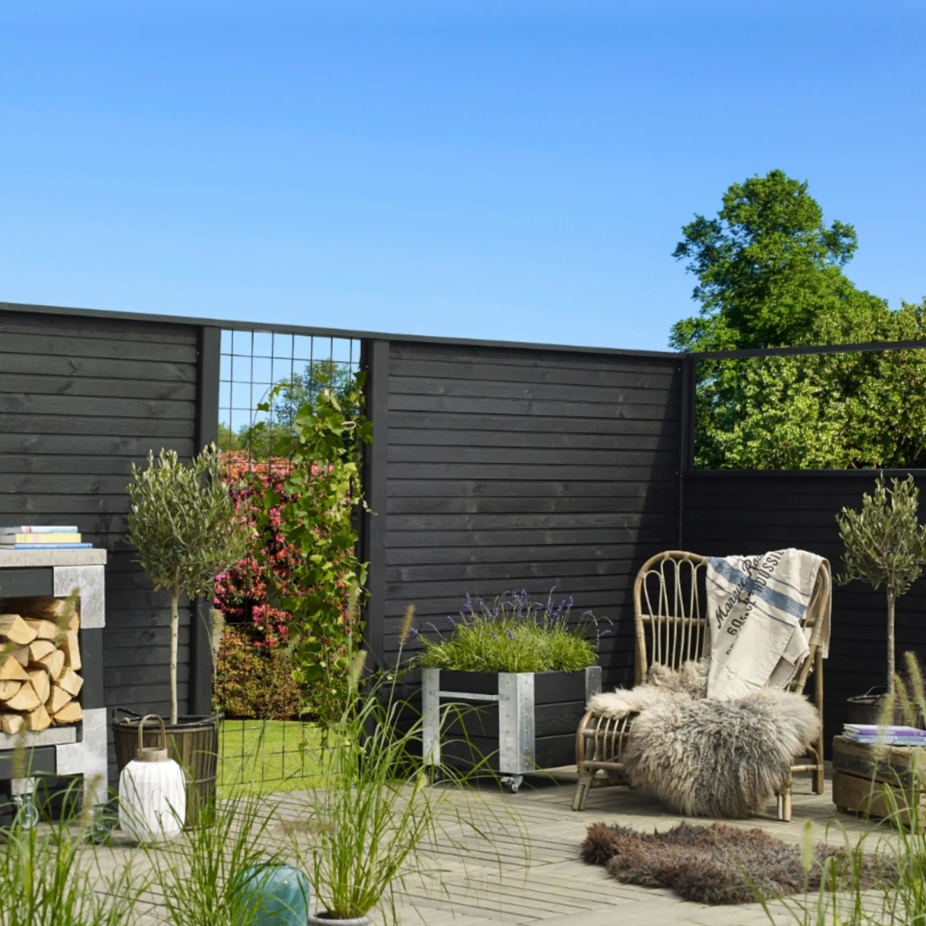 PLUS Plank Profilhegn er et massivt hegn på 174×166 cm, trykimprægneret og grundmalet i sort. Hegnet skærmer effektivt for kølige vinde og gør det muligt at forlænge havesæsonen og nyde udelivet længere ind i efteråret.