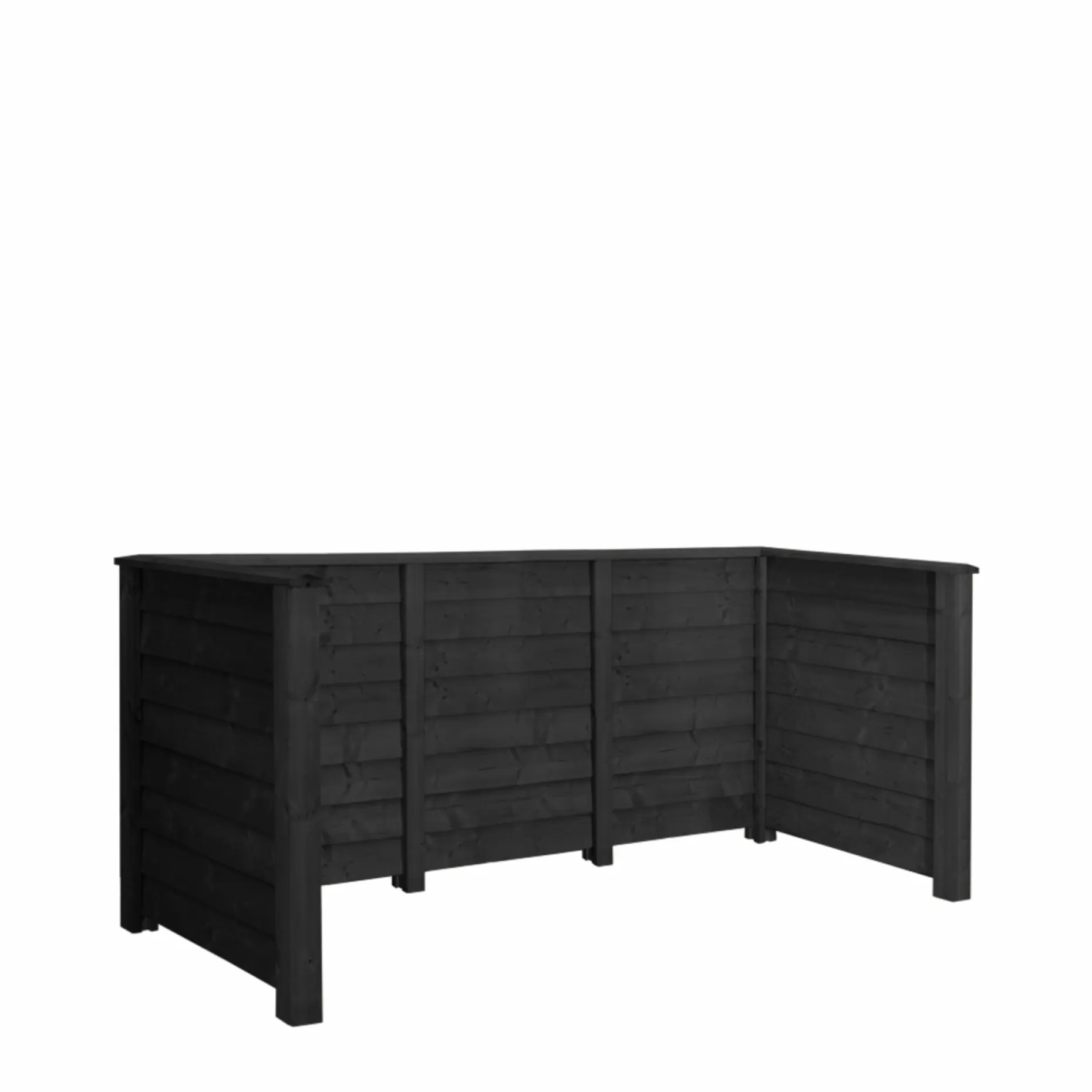 Anvend skjulet ved indkørslen, ved husets bagindgang eller ved skur og saml op til tre affaldsbeholdere skjult og ryddeligt. Den sorte overflade giver et neutralt, stilrent udtryk, som passer til både moderne og klassiske facader.