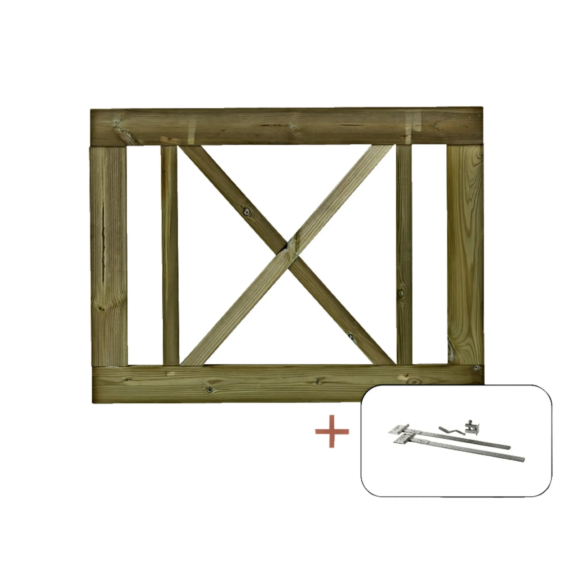 Inkluderede beslag betyder, at lågen er klar til montering og passer til standardopgaver ved indkørsel, gangarealer eller små haver. Den naturfarvede overflade integreres let med beplantning og terrasseinventar.