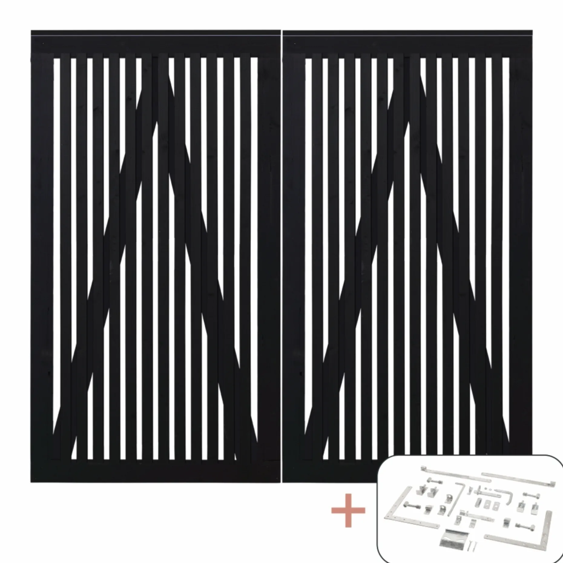 Den sorte grundmaling fremhæver lågens linjer og gør den velegnet som både dekorativ afgrænsning og funktionel adgangsløsning. Monteres med de medfølgende beslag for stabil opbygning og langvarig funktion.