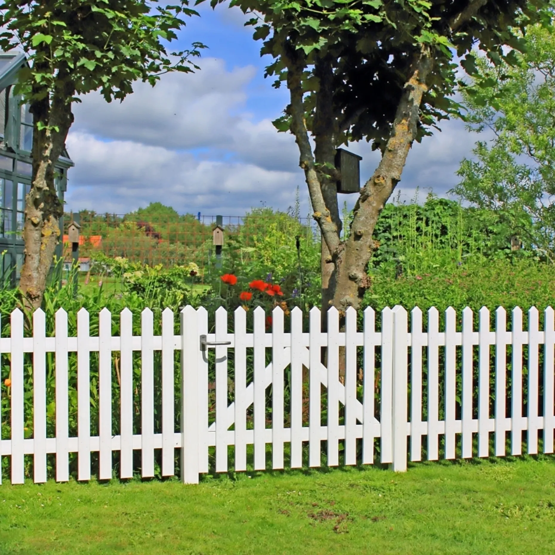 Tilbehør som låger fås i enkelt, bred og dobbelt udgave, hvilket giver fleksibel adgangsløsning. Lad for eksempel røde roser vokse bag det hvidgrundede stakit for et rent og idyllisk udtryk i haven.