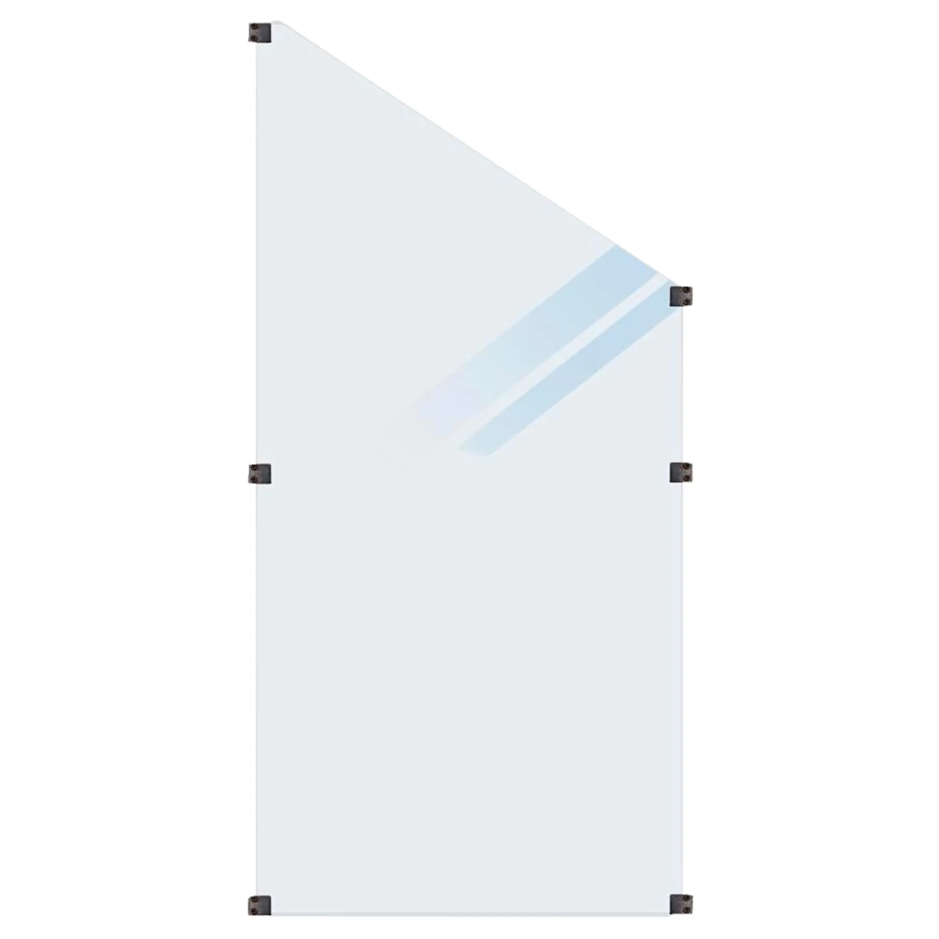 Dette hærdede glashegn i frosted udførelse leveres som skråelement. Varenr. består af 1 stk. glaselement og 6 stk. glasbeslag til firkantede stolper. Glaselementet er 6 mm hærdet og leveres inklusiv glasbeslag og skruer. Hærdet glas granulerer ved brud i stedet for at splintre i skarpe stykker, hvilket reducerer risikoen for skarpe fragmenter ved håndtering. Frosted overflade giver et matteret udseende. Skruerne til montering findes til stål-, komposit- og træstolper og leveres i poser á 24 stk.