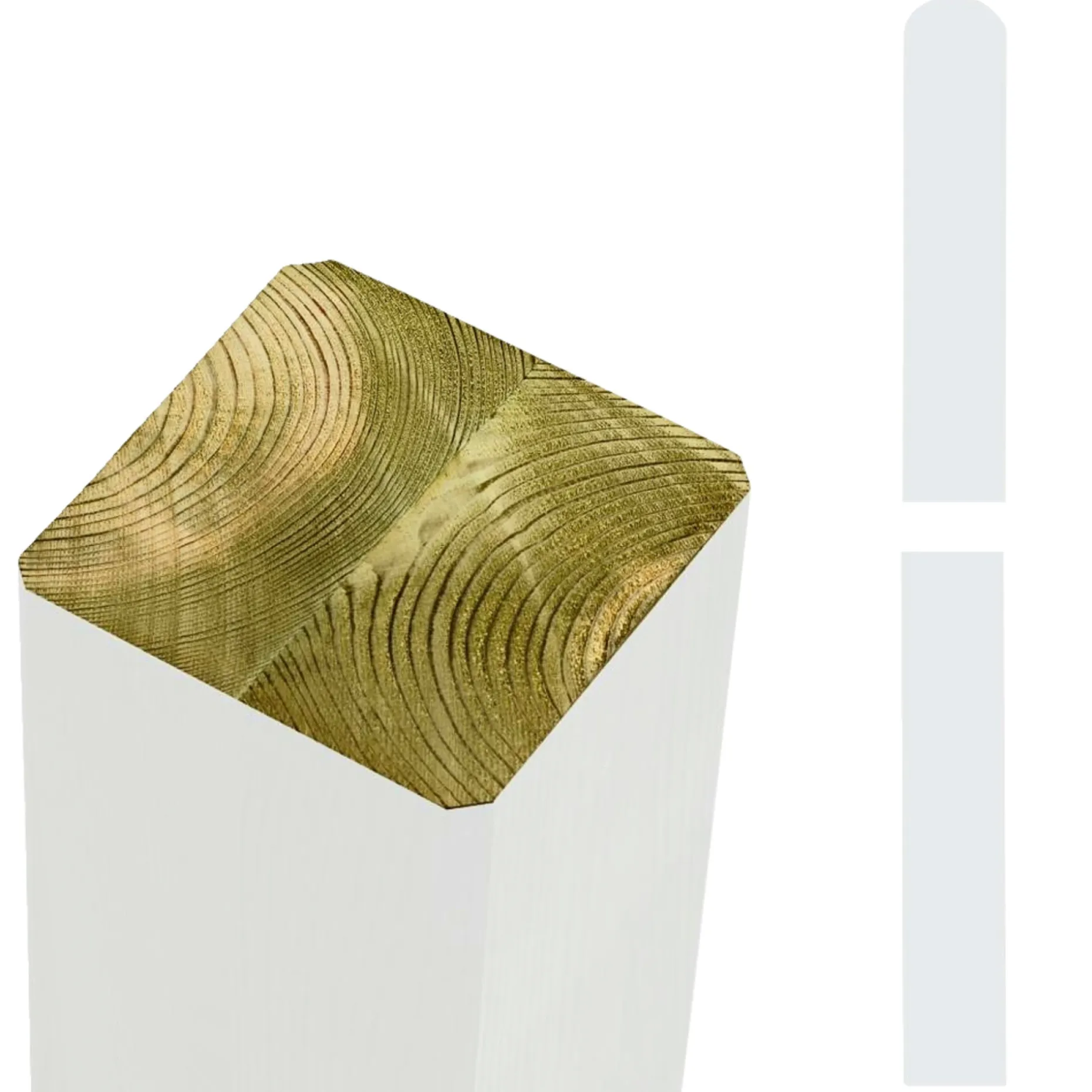 Stolpen er sammenlimet af to stykker træ for at mindske revnedannelser og vridning samt sikre styrke og formstabilitet. For ekstra beskyttelse af stolpen anbefaler vi tilkøb af stolpehætter. Stolperne tilbydes i trykimprægneret eller i trykimprægneret og grundmalet i 3 farver.