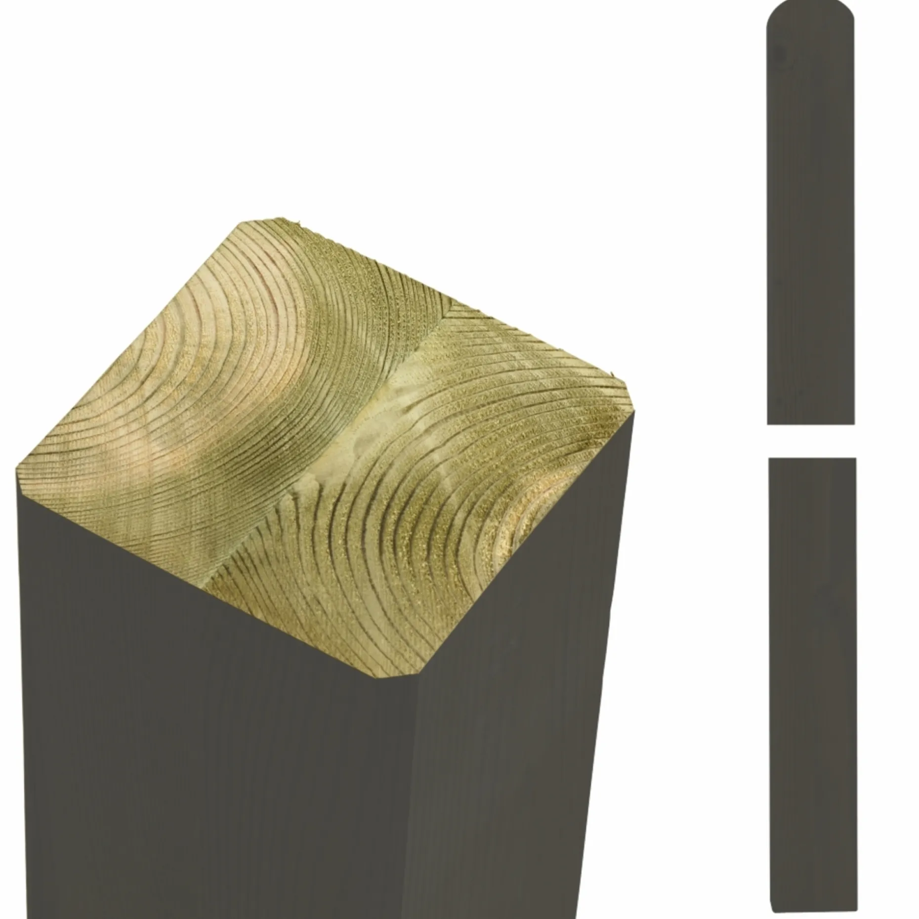 Omlimningen samler to stykker træ for at mindske revnedannelser og vridning og samtidig sikre styrke og formstabilitet under belastning. Den omlimede opbygning gør stolpen mindre tilbøjelig til splintdannelse og øger forudsigeligheden ved montering.