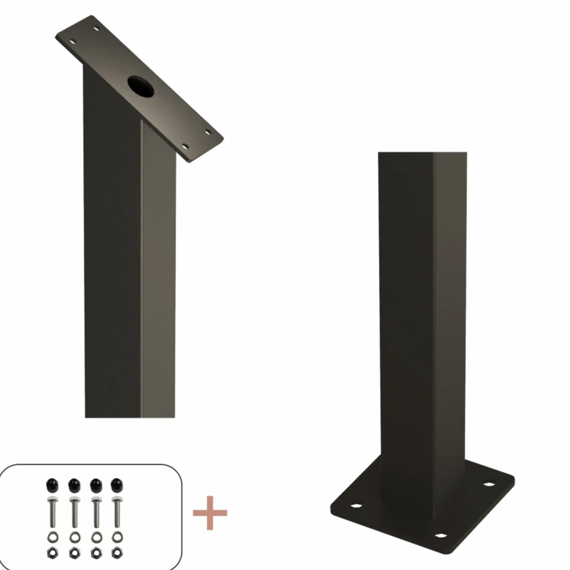 Stålstolpe med fod og skrå top, inkl. bolte. Designet som et tilvalg til terrassetrapper med trappevanger, så du kan fuldende et gelænder og skabe et ensartet udtryk.