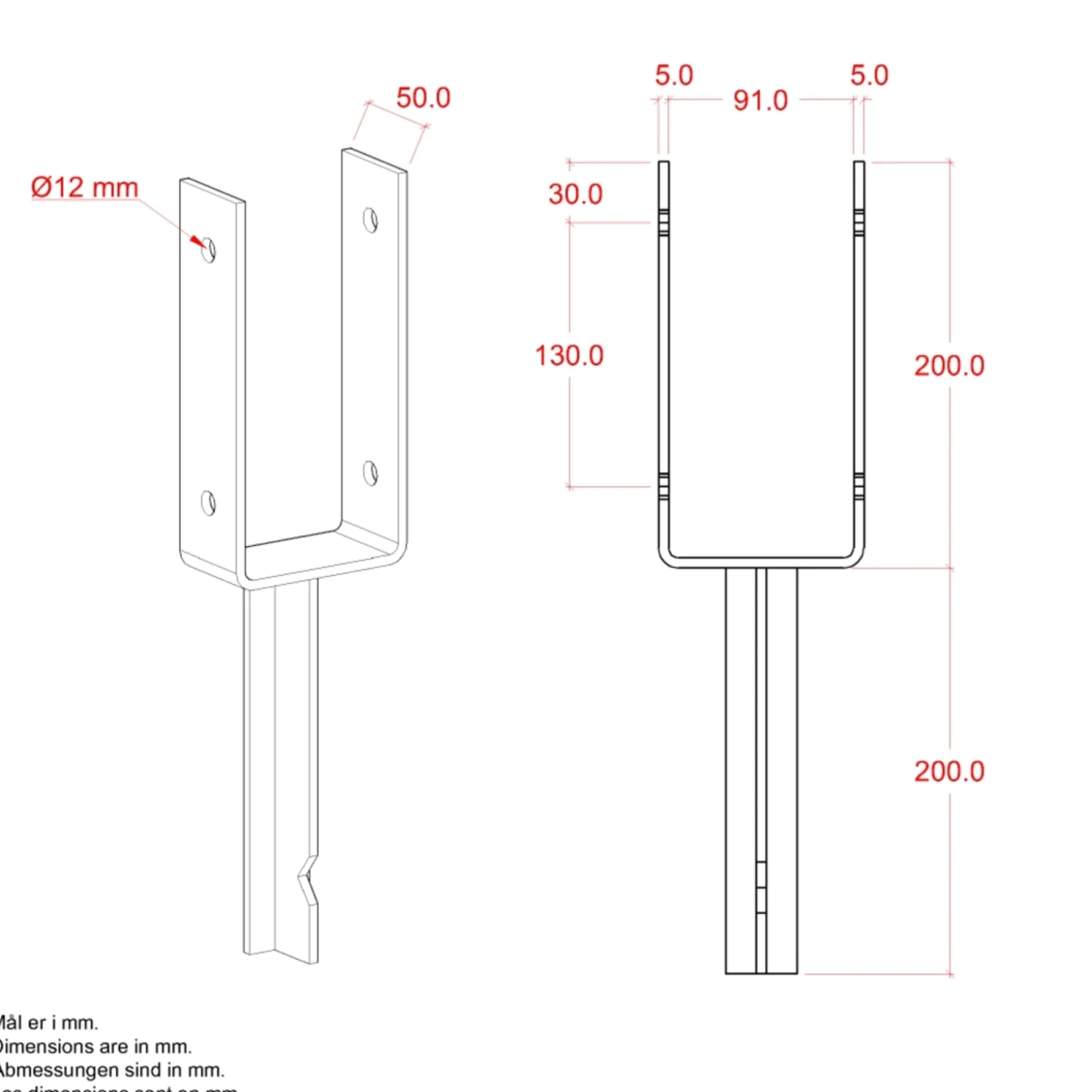 Produktoplysningerne om mål og pasform gør det nemt at vælge den rigtige stolpefod til dit projekt.