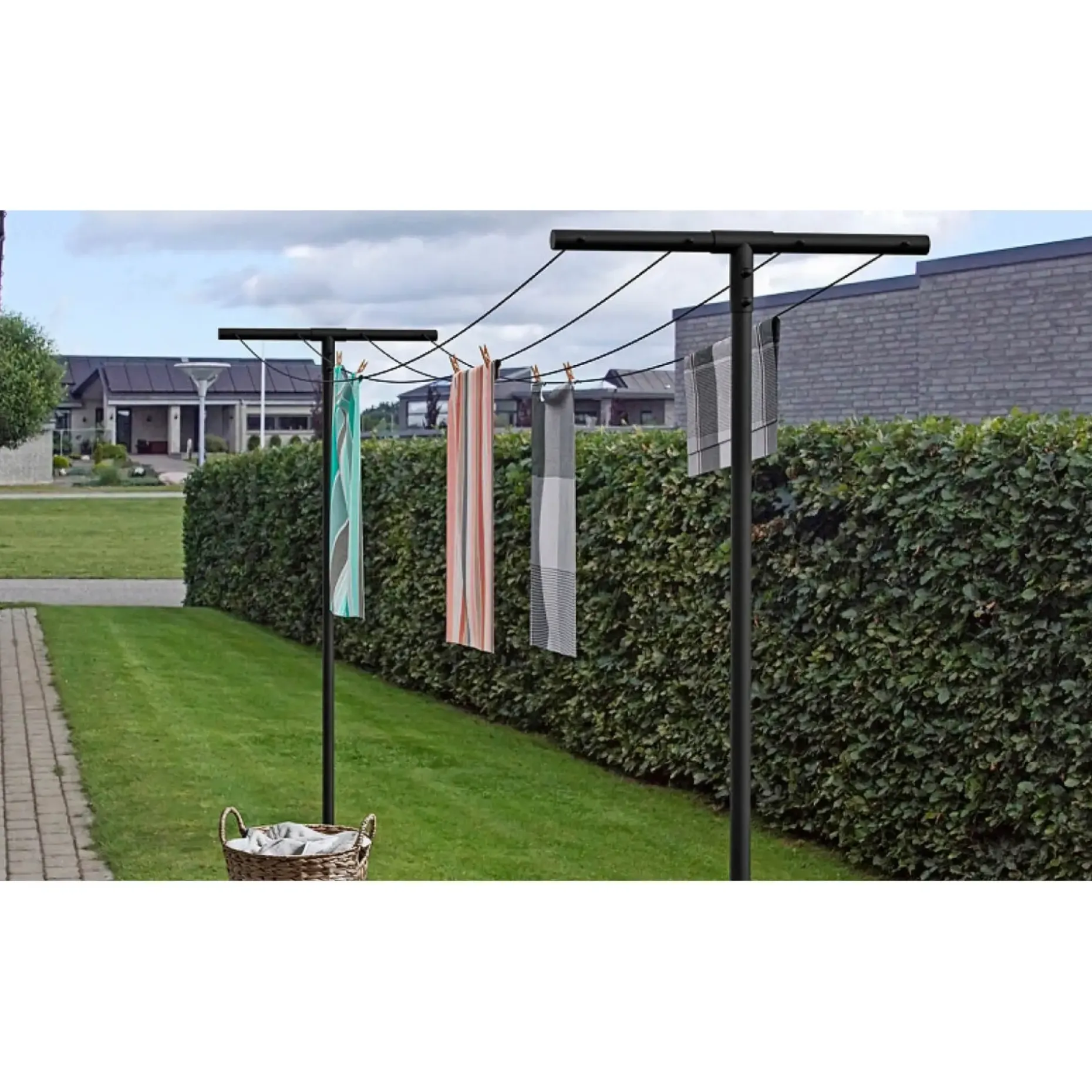 Produktet leveres kartonpakket og er designet med robuste stolper for langvarig brug. Med et udendørs tørrestativ kan du tørre tøj hele året rundt og skåne både miljø og pengepung, samtidig med at du får en praktisk løsning til dagligt brug.