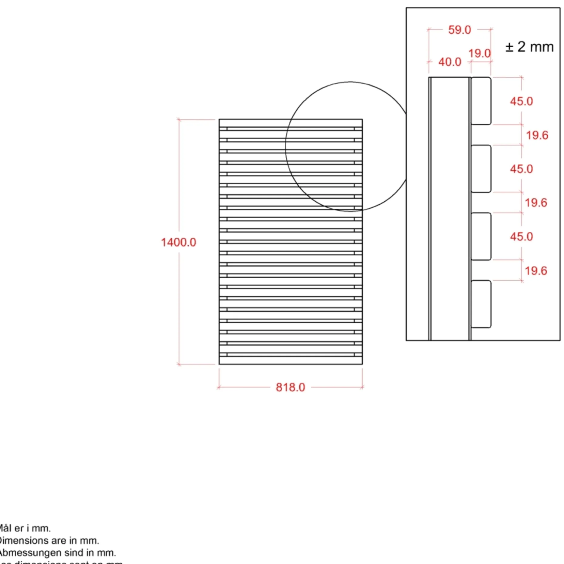 Hegnet fås i gyldenbrun og leveres i elementer. Størrelsen 83×140 cm passer til mange standardopsætninger, og ThermoWood®-materialet giver en varm tone og en overflade, der fremhæver trælisternes struktur.
