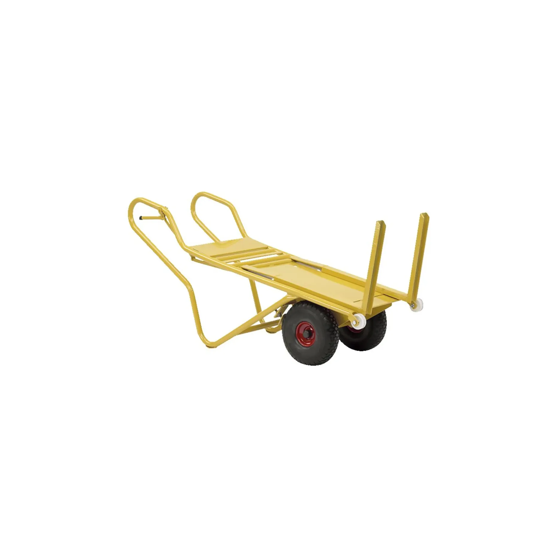 12″ lufthjul forbedrer fremkommeligheden på grus, jord og ujævne flader, mens bremsen holder vognen på plads ved aflæsning. Den samlede kapacitet og de oplyste mål gør den egnet til både privat og byggepladsbrug.