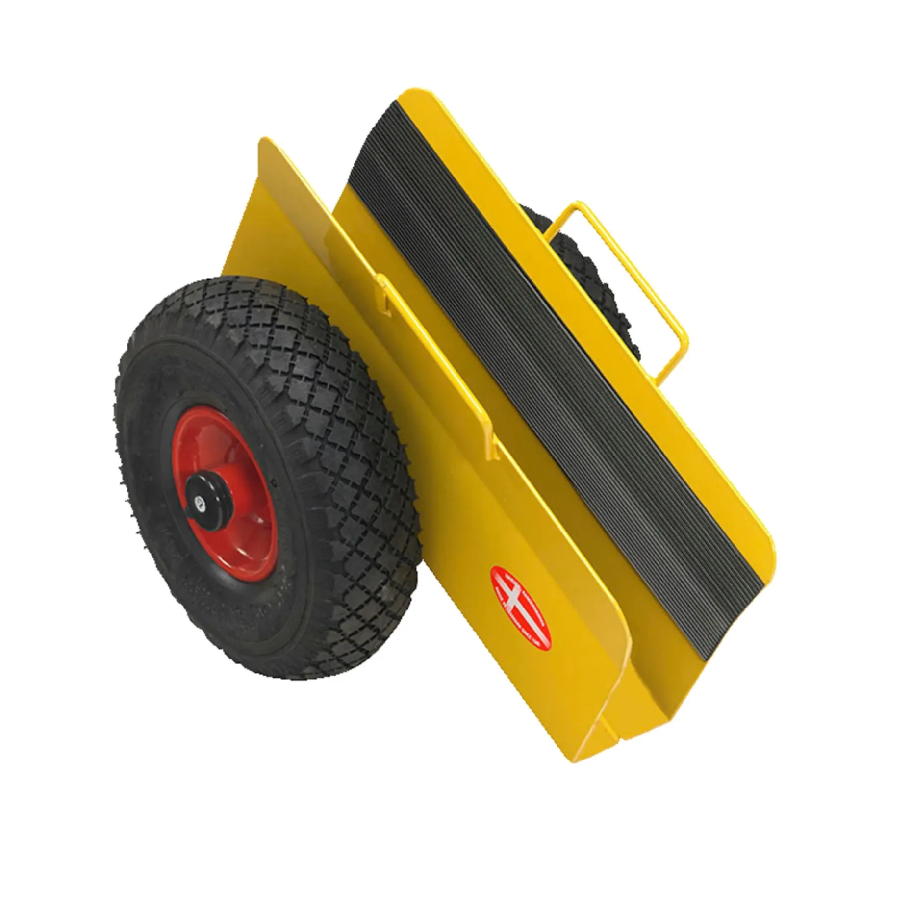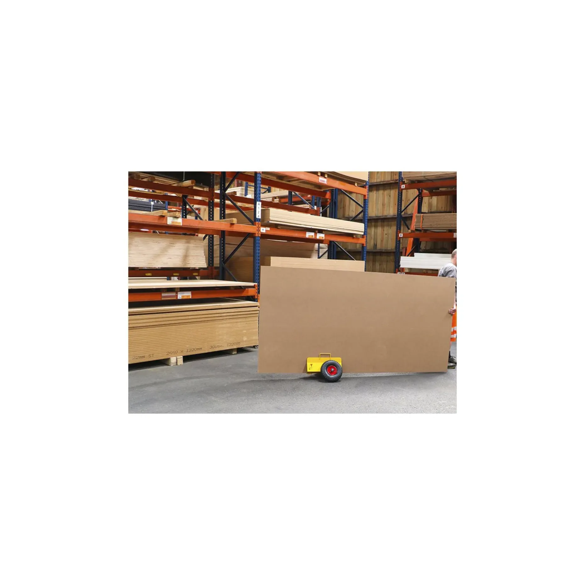 Redskabet gør det muligt for én person at håndtere plader sikkert i trange rum og ved døråbninger, fordi klemmen fastholder emnet under flytning. Luftgummihjulene mindsker rystelser og beskytter overfladen mod skrammer under transport.