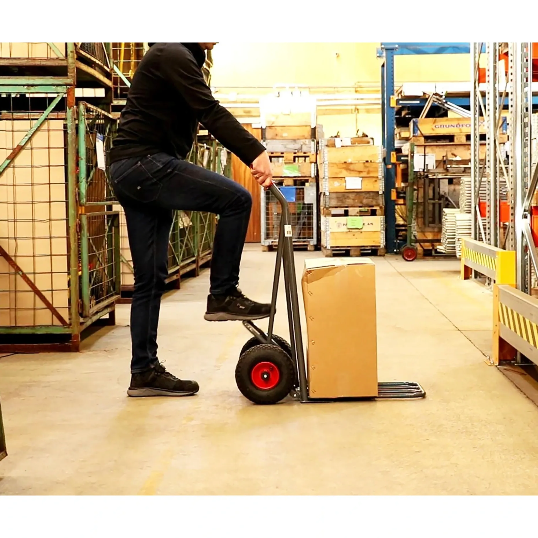 Ravendo sækkevogn med Tip-Let er designet til alsidig brug på byggepladsen, i lageret og på kontoret. Tip-Let funktionen reducerer belastningen med 50 %, hvilket gør løft og tippemoment lettere for én person. Den fuldsvejsede rørkonstruktion giver høj robusthed og lang levetid under daglig brug.