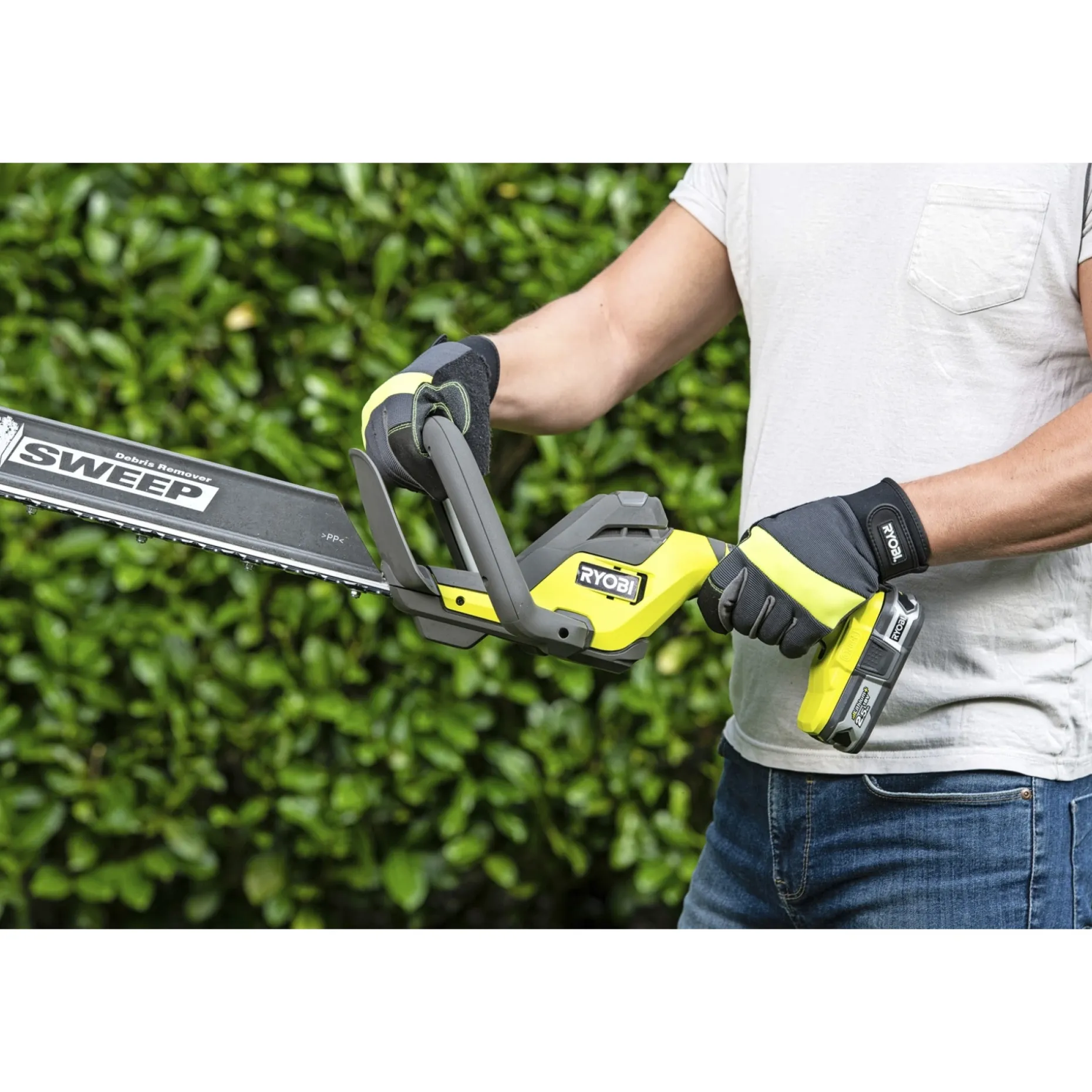 HedgeSweep™ løvopsamler medfølger og gør det let at fjerne afklippede grene løbende, så efterarbejdet minimeres. Maskinen leveres uden batteri og oplader. En del af ONE+ systemet.