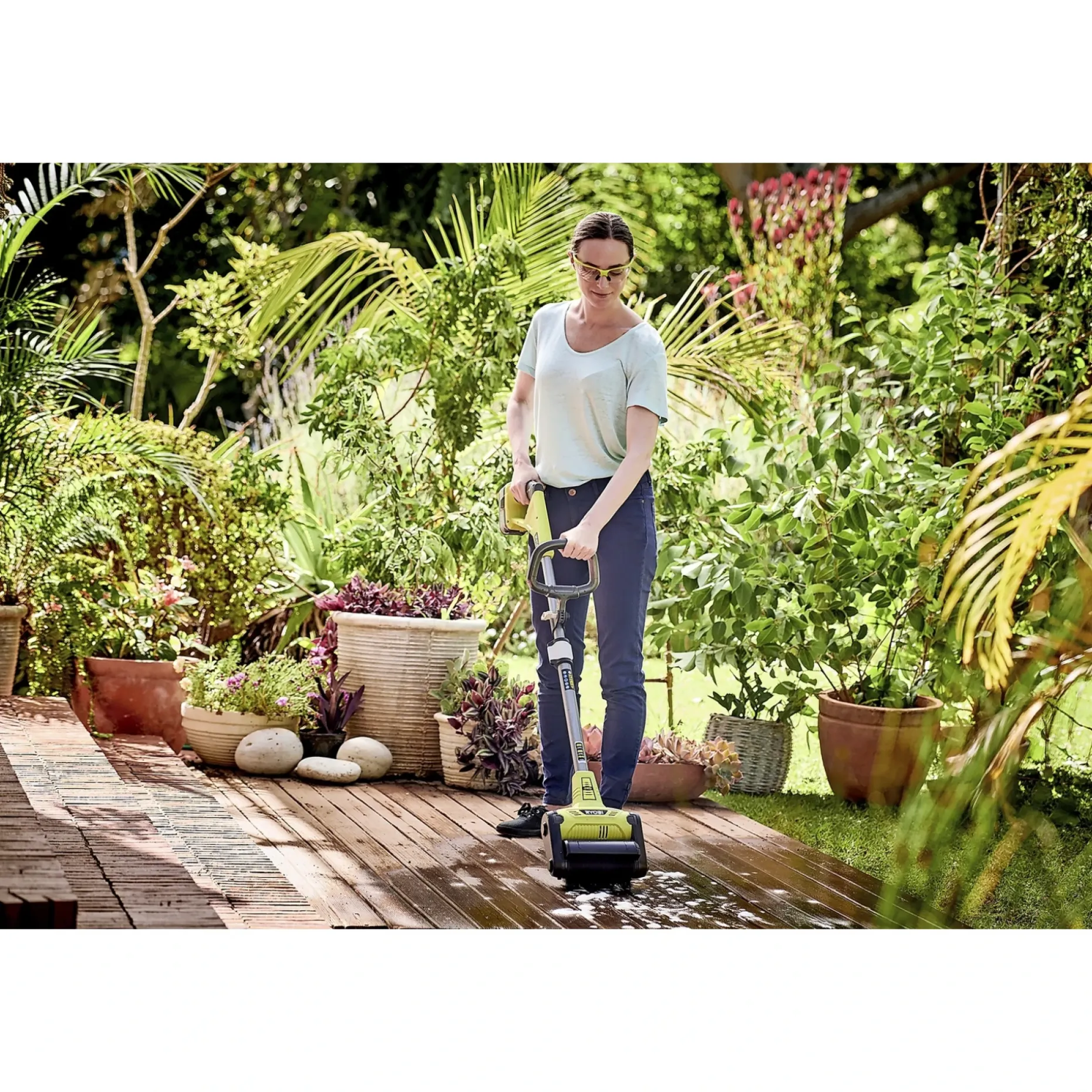 Terrasserenser med multibørste til effektiv rengøring af en lang række hårde overflader i haven. Multibørsten fjerner mos, snavs og ukrudt og kan anvendes til at rengøre træterrasse, fliser og indkørsel. Udskiftning af børsten sker nemt og uden værktøj. Vertebrae-designet har et justerbart håndtag og teleskopgreb, der giver ergonomisk og behagelig rengøring i længere tid. Som en del af ONE+ familien er enheden kompatibel med Ryobi 18V-seriens have- og elværktøjer. Produktet leveres med en multifunktionel overfladebørste og er beregnet til solo brug uden batteri og oplader. Multibørsten efterlader en ren overflade, der gør træterrassen klar til behandling og får fliser til at fremstå pænere. Den fjerner effektivt mos og ukrudt mellem fliser uden kraftig skrabning. Det justerbare håndtag og teleskopgrebet reducerer belastning af ryg og skuldre, så du kan arbejde længere uden pause. Som del af ONE+ familien giver kompatibiliteten fleksibilitet til at bruge eksisterende Ryobi 18V-batterier på tværs af have- og elværktøj. Leveres med en multifunktionel overfladebørste, der gør den velegnet til flere rengøringsopgaver i haven.