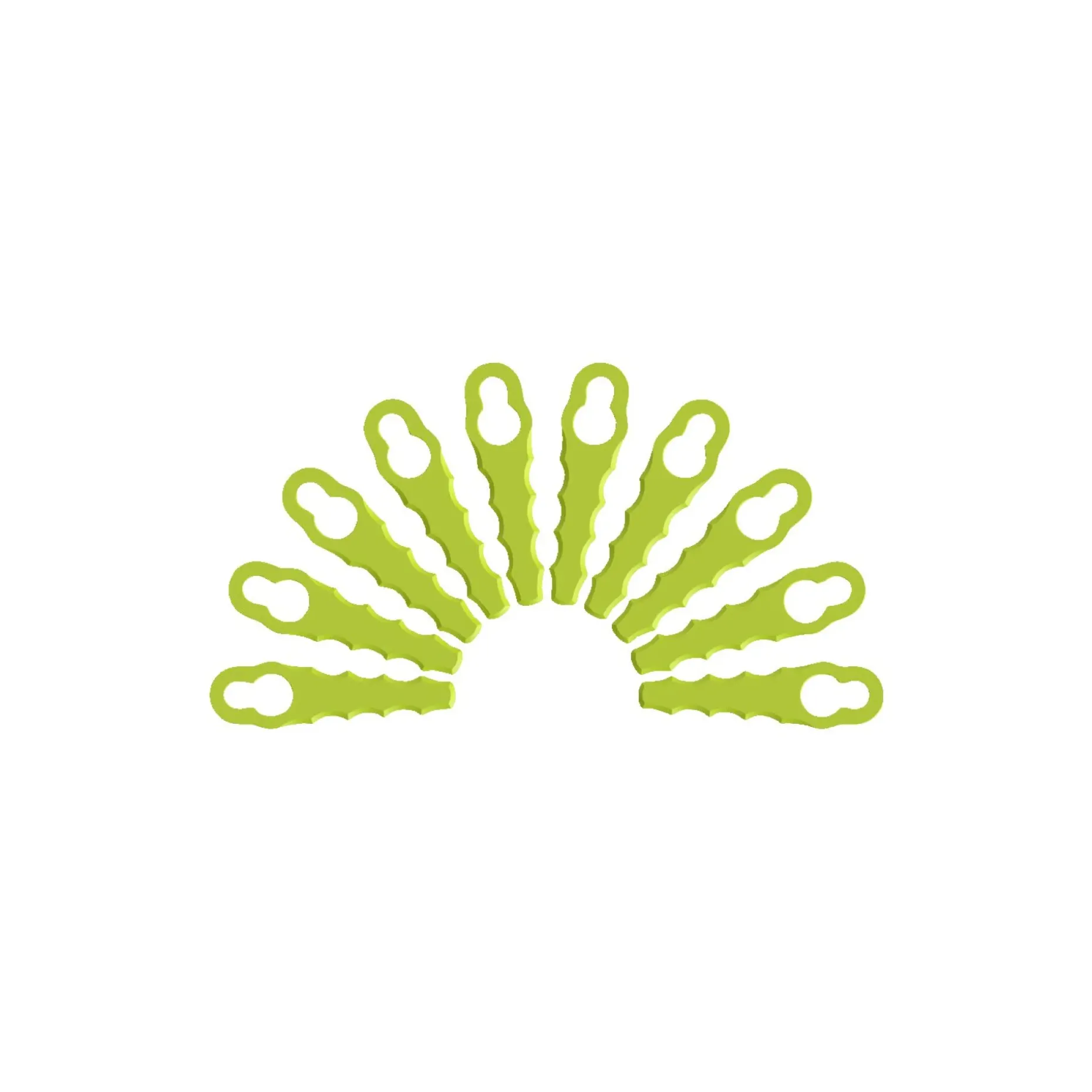 Græstrimmerklinger i plast i en pakke med 10 stk. Eliminerer opgaven med skift af trimmertråd og fungerer som tilbehør til trimmerhovedet.